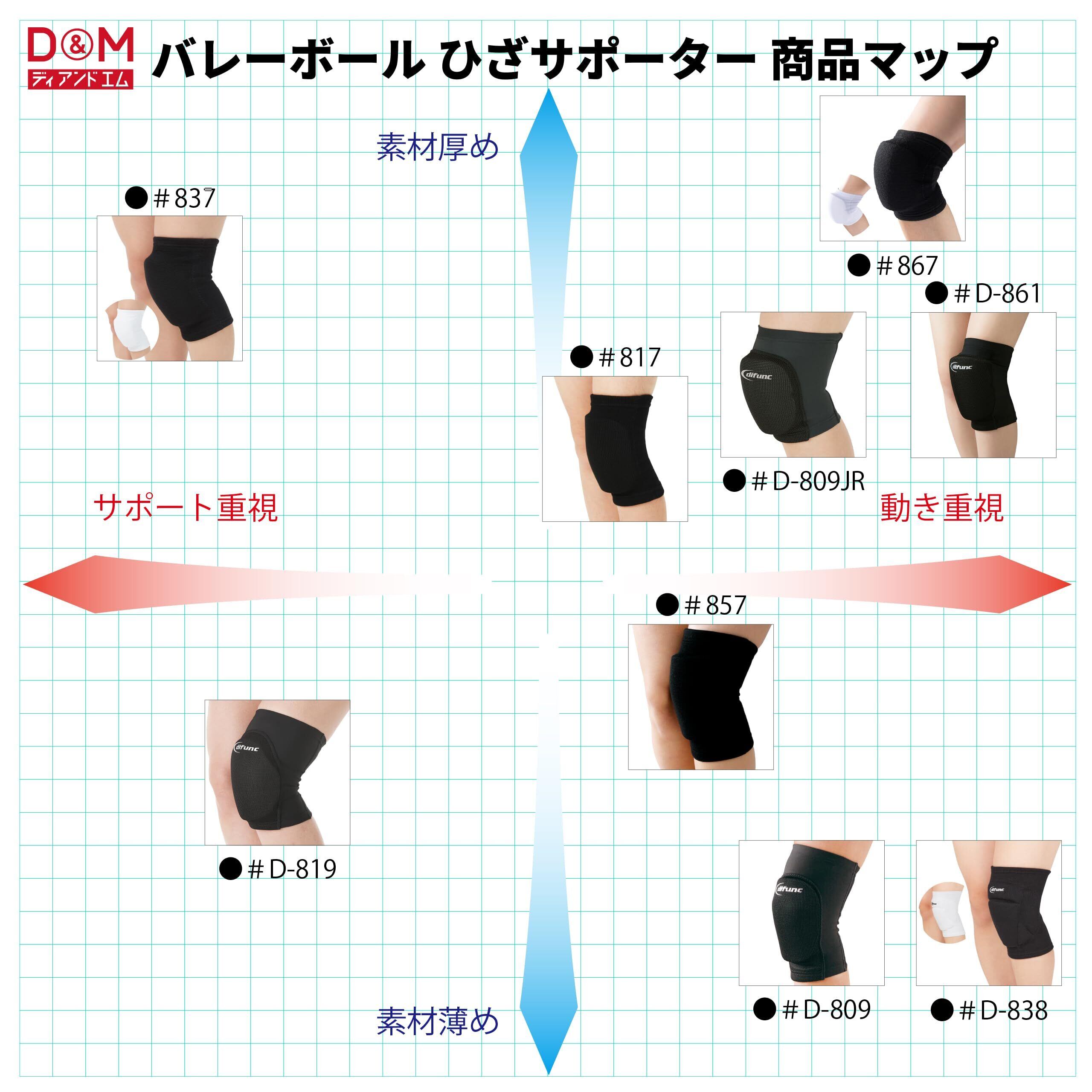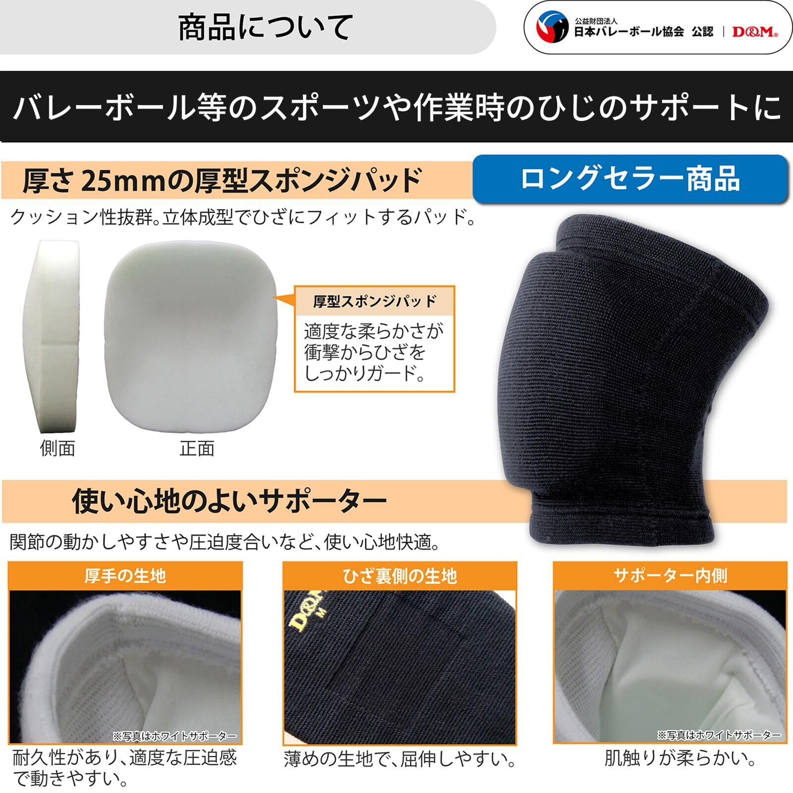 D&M(ディーアンドエム) 膝サポーター バレーボール ニーパッド 膝用 25mm 厚型 パッド付 黒 Lサイズ 左右兼用 1個入り 837 大人用 固定 サポート 通気性 柔軟 伸縮 吸汗 速乾 衝撃吸収 JVA公認 スポーツ