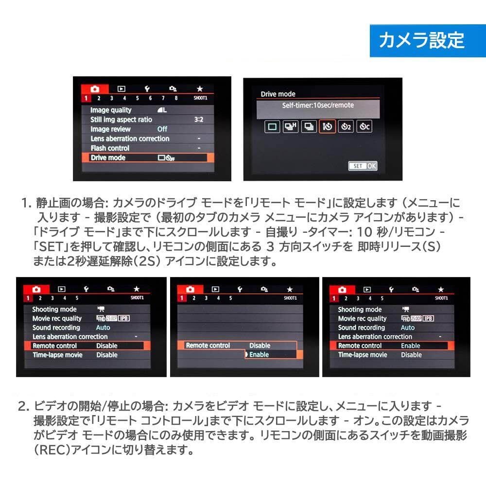 多機能リモコン:動画/静止画撮影、オートフォーカス/シャッター、2秒タイムラプス撮影、ズーム表示など。風景撮影、バルブ撮影、マクロ撮影が楽しめに!