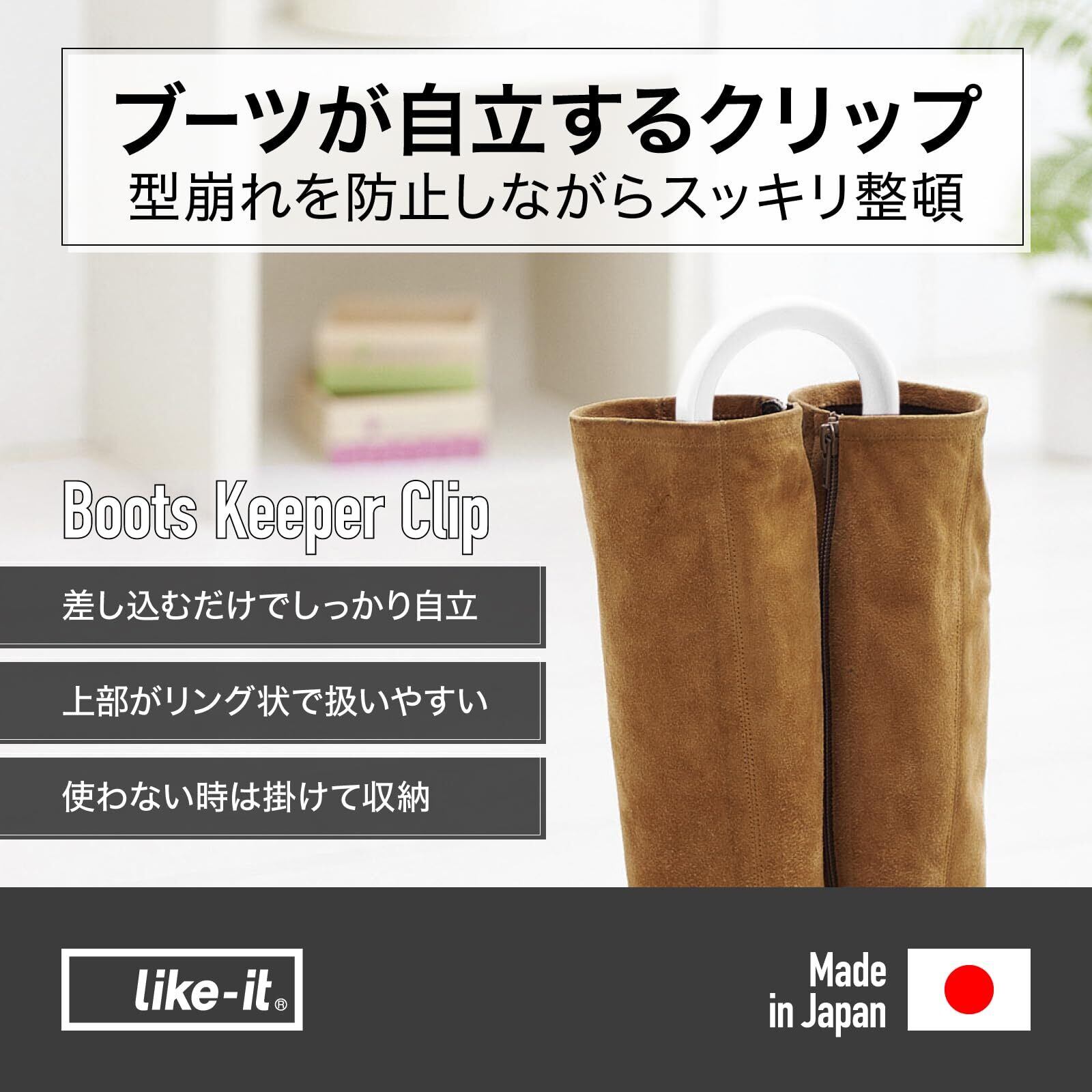 ライクイット (like-it) 靴 収納 ブーツキーパー クリップ 2P 約幅10x奥41x厚1.6cm ナチュラル 日本製 FS-12L ブーツ収納玄関 型崩れ防止 省スペース 長靴 レインブーツ