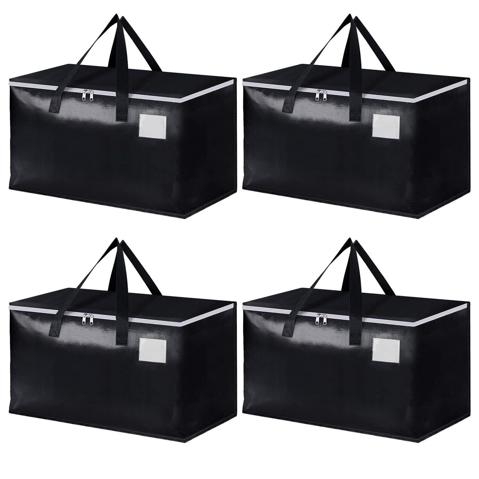 布団収納バッグ 特大 布団収納ケース 持ち手付きふとん収納袋 大容量引っ越しバッグ 折りたたみ式掛け布団収納袋 スボーツ アウトドア キャンプ 旅行 衣類収納袋 (ブラック色 4枚組)