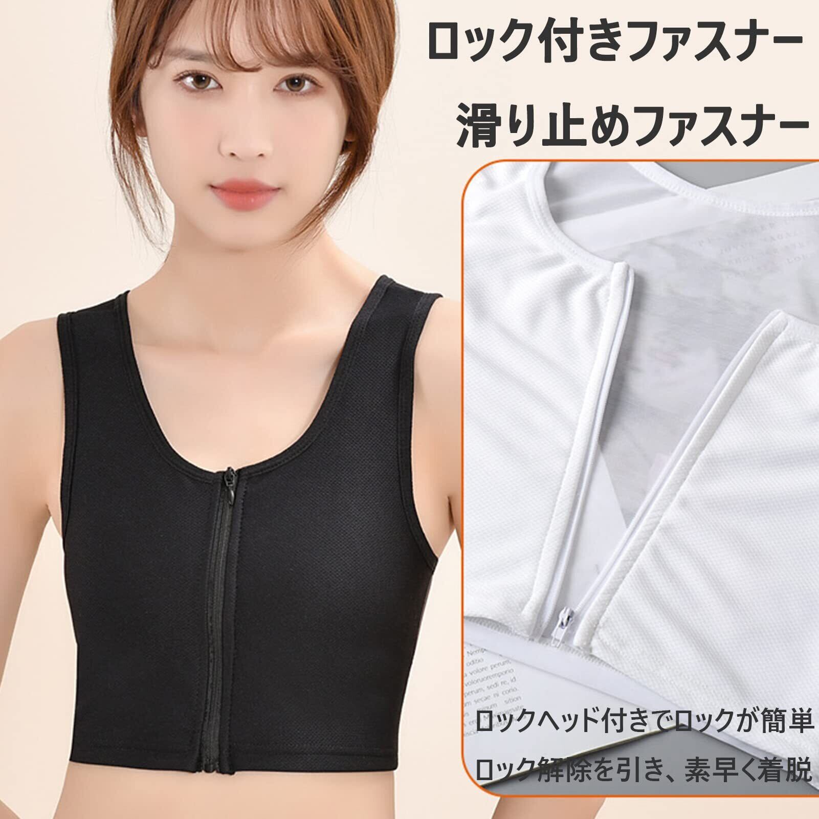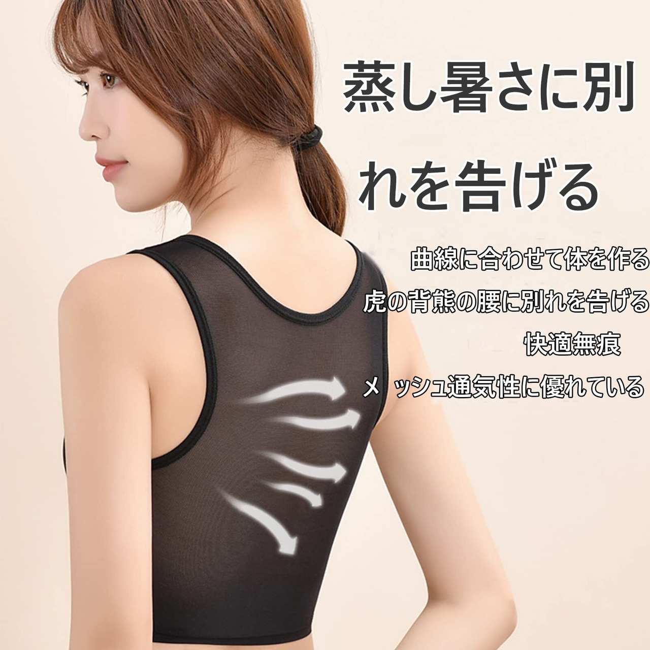 胸つぶし ハーフタンクトップ ナベシャツ 夏 ハーフ ショート丈 ブラジャー 男装 レディース 胸を小さく見せる 通気性素材 速乾 超軽量 脱着簡単 締め付けなく快適 バスト 補正 下着 スポブラ トラシャツ コスプレ さらし ブラ 和装ブラ (3XL, ブラック)