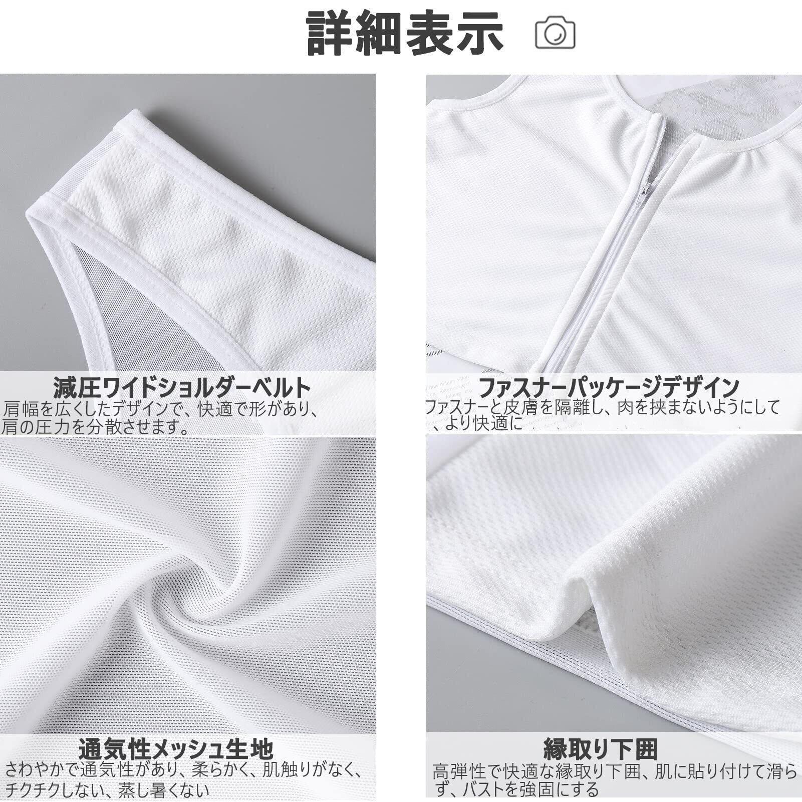 【着脱便利&サイズの選び方】:胸囲に基づいて左のサイズ参照写真の説明を参照して適切なサイズを選択してください。 2つのサイズで迷う場合は、大きい方を選択してください。この男装コスプレ下着は簡単なファスナータイプで着脱が便利です。