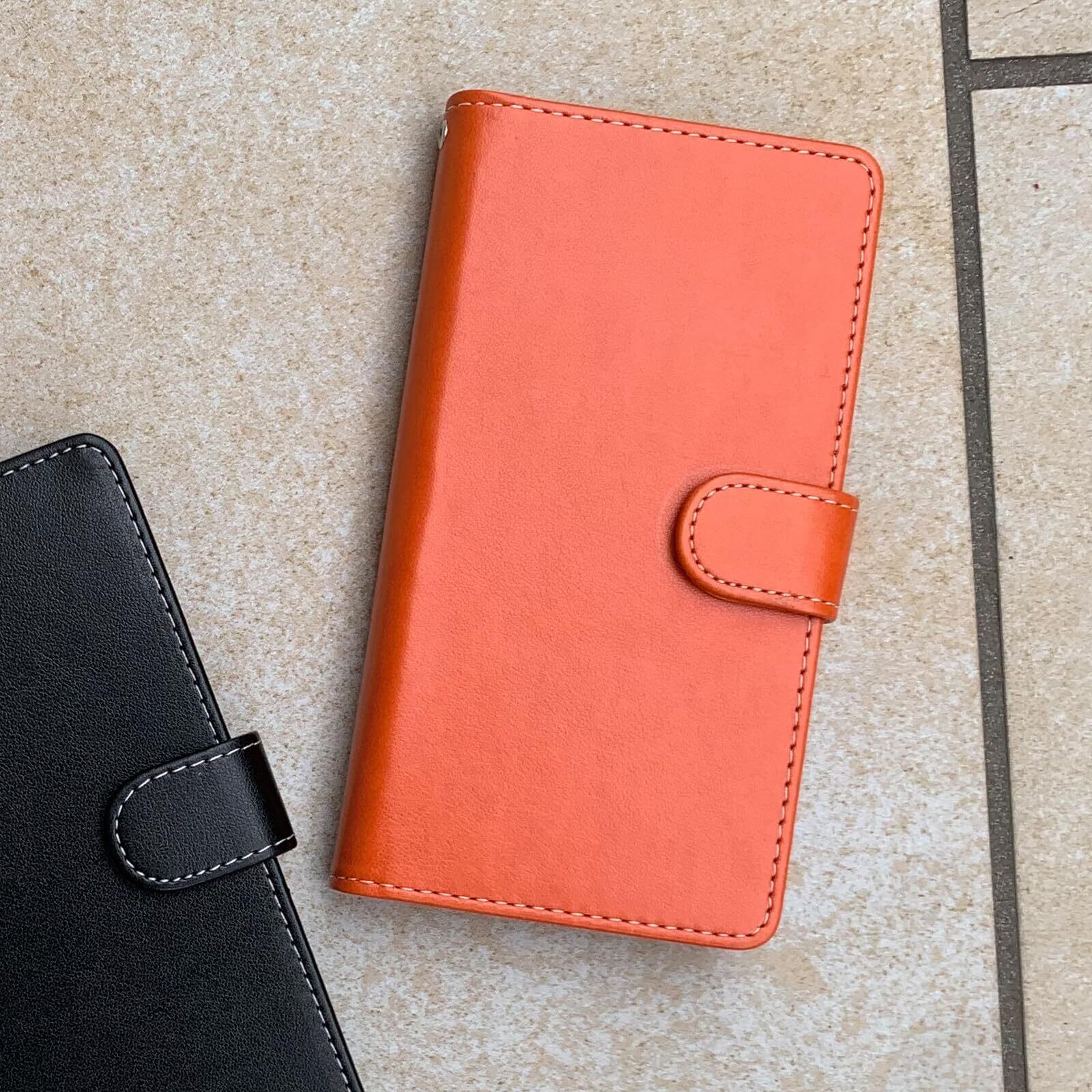 部長手帳型ケース。できるだけ本革の風合いを出す為、柔らかいpuレザーを使用し、手帳表面に特殊な加工を施してありますので細かい傷などがある場合がございます。お使いいただくほどに風合いが増し、数々の試練を乗り越えてきた部長の風格漂う手帳となってまいります。