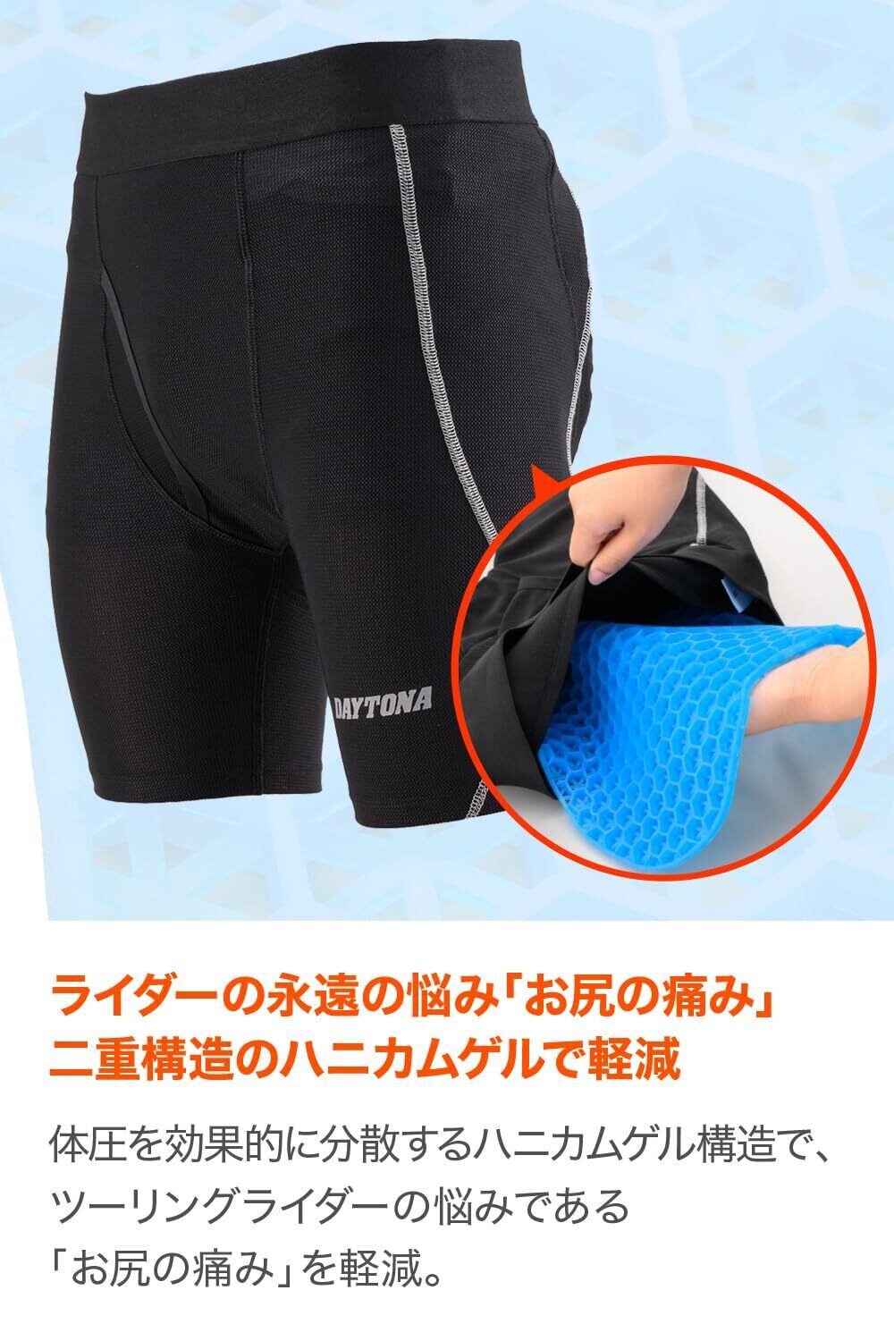 デイトナ(Daytona) バイク用 ゲルパンツ 二重構造 ハニカムゲル お尻の痛み軽減 DI-009 ブラック XLサイズ 32499