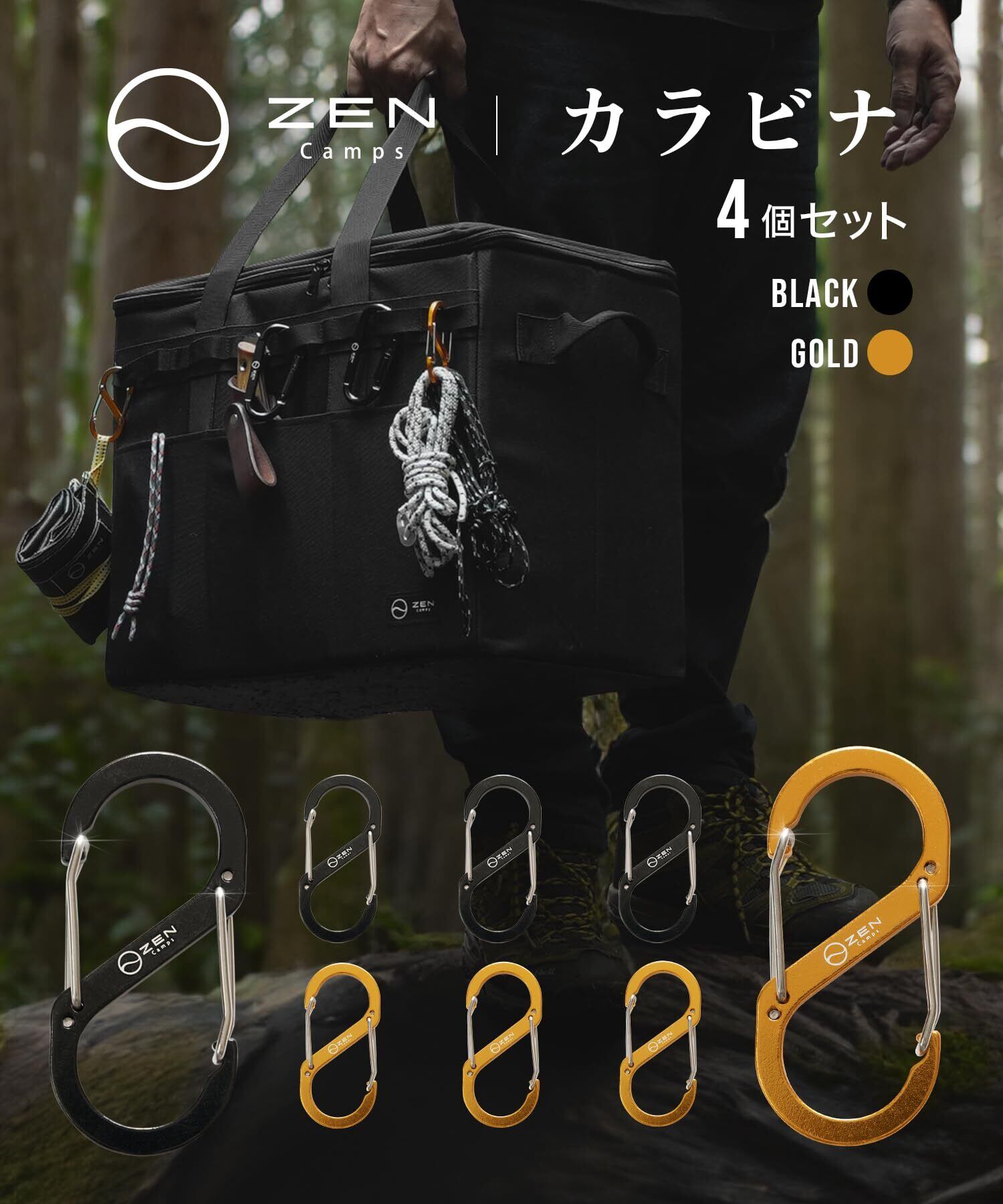 ZEN Camps カラビナ 4個セット アルミ合金 超軽量 キャンプ アウトドア (ブラック)