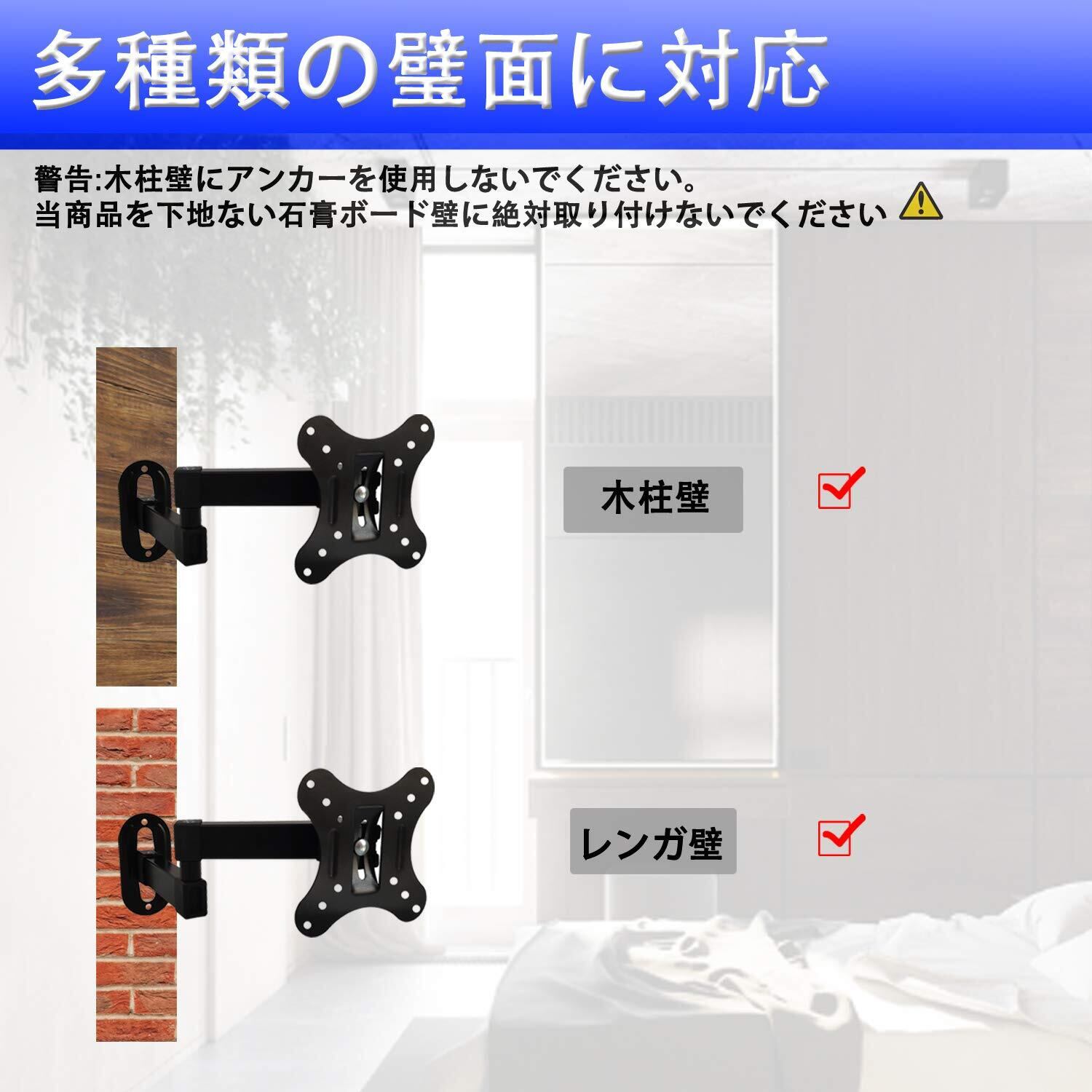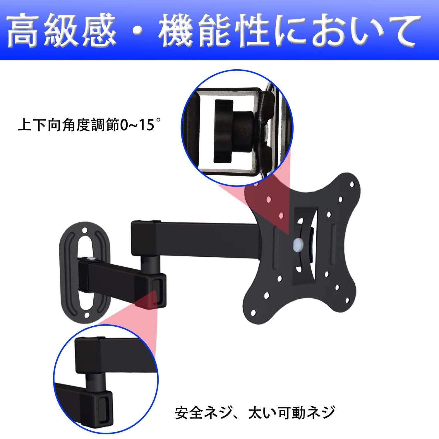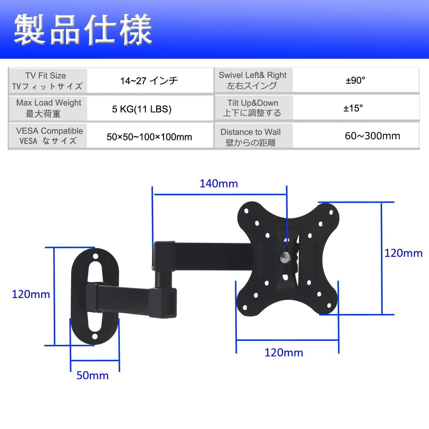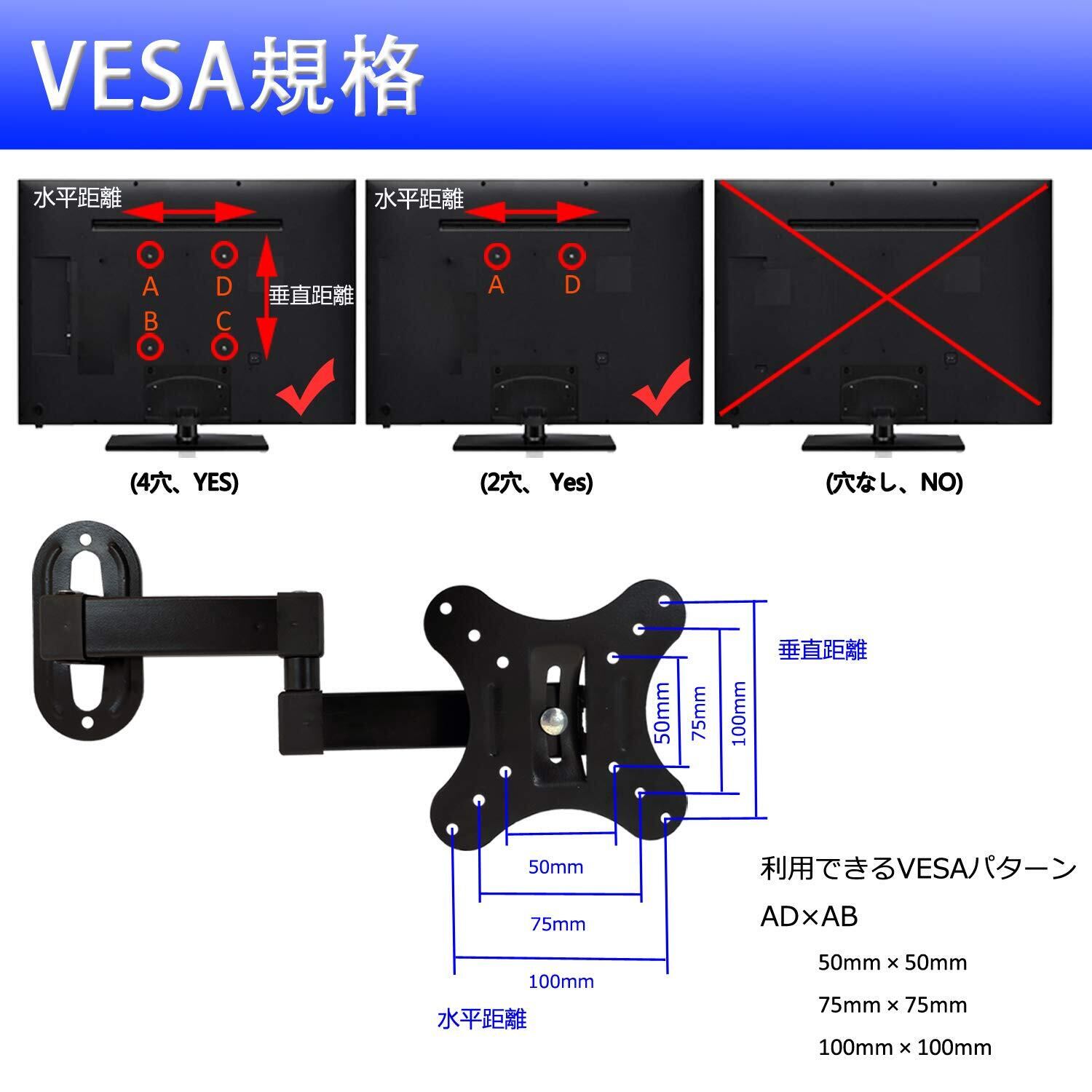 【液晶モニター壁掛け金具~多くのテレビ壁掛け可能】14~27型程度までの設置が可能で、耐荷重は5kgです。テレビ用ブラケットはvesa 50X50、75X75、100X100mmに対応しています,壁掛けテレビ 金具。