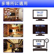【テレビモニター 壁掛け~安全、安心】スチ一ル製の堅牢な作りでテレビを軽々支えます,耐荷重は万全の5kg,安全ロックシステムのため、角度の不安定や落下の危険などが避けられます。壁掛けのデザインで、テレビが倒れる心配がなく安心です。テレビ台が不要になり、お部屋がすっきり。