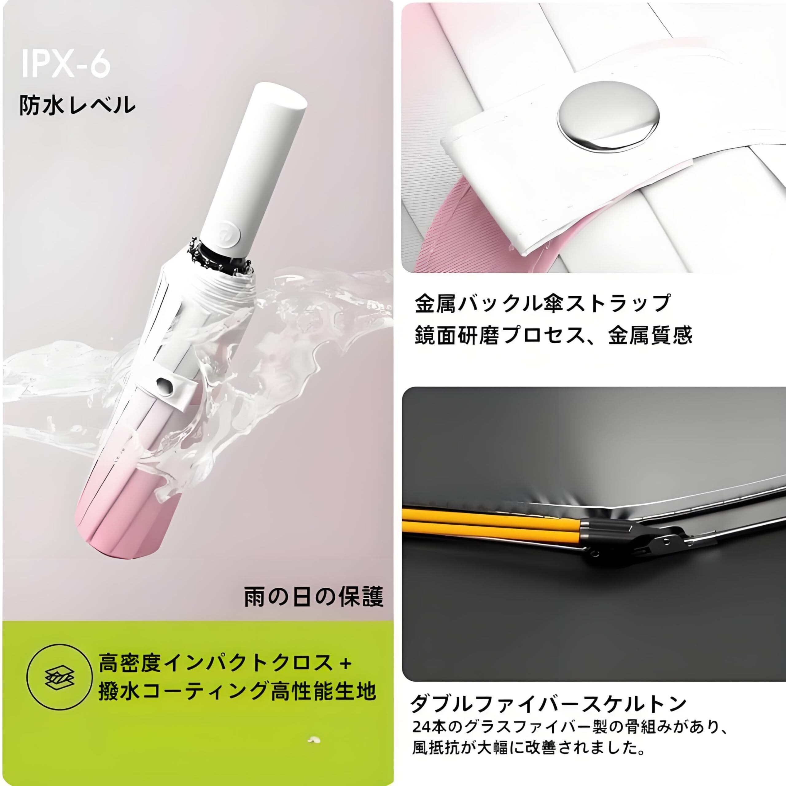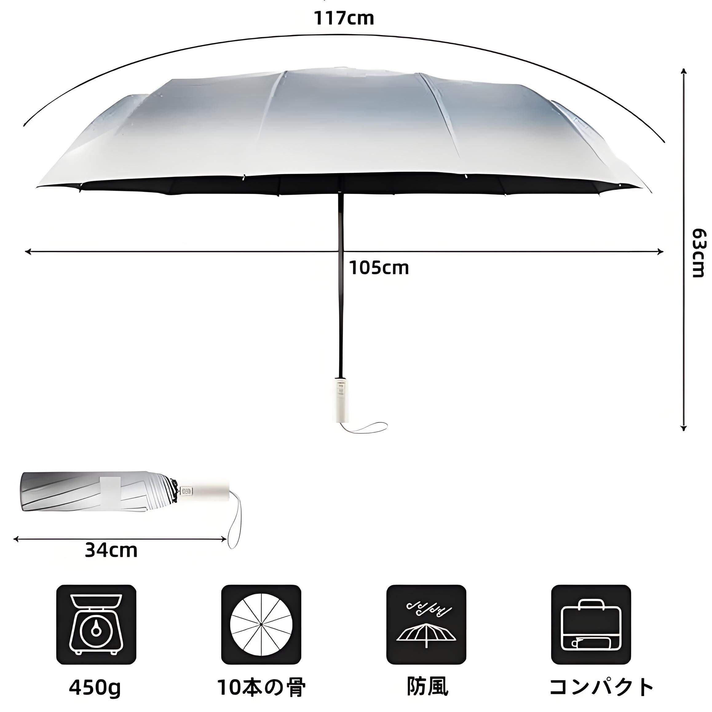 2. 日傘紫外線から守る特殊材料を採用し、かなりの紫外線を吸収します。90%以上のカット率があります。高密度で防水性の高い素材を採用し、撥水性に優れている折りたたみ傘です。長い間使用しても雨の染み込みが気にならなくなりました。強風で裏返っても元に戻ります。雨と風が同時に襲ってきやすい日本だからこそ、丈夫で折れにくい傘は魅力です。風をうまく受け流しながら、悪天候に負けずに使用できます。 シャフトは頑丈なステールを採用、強風にあおられても、安易に折れたり曲がったりする心配ありません。