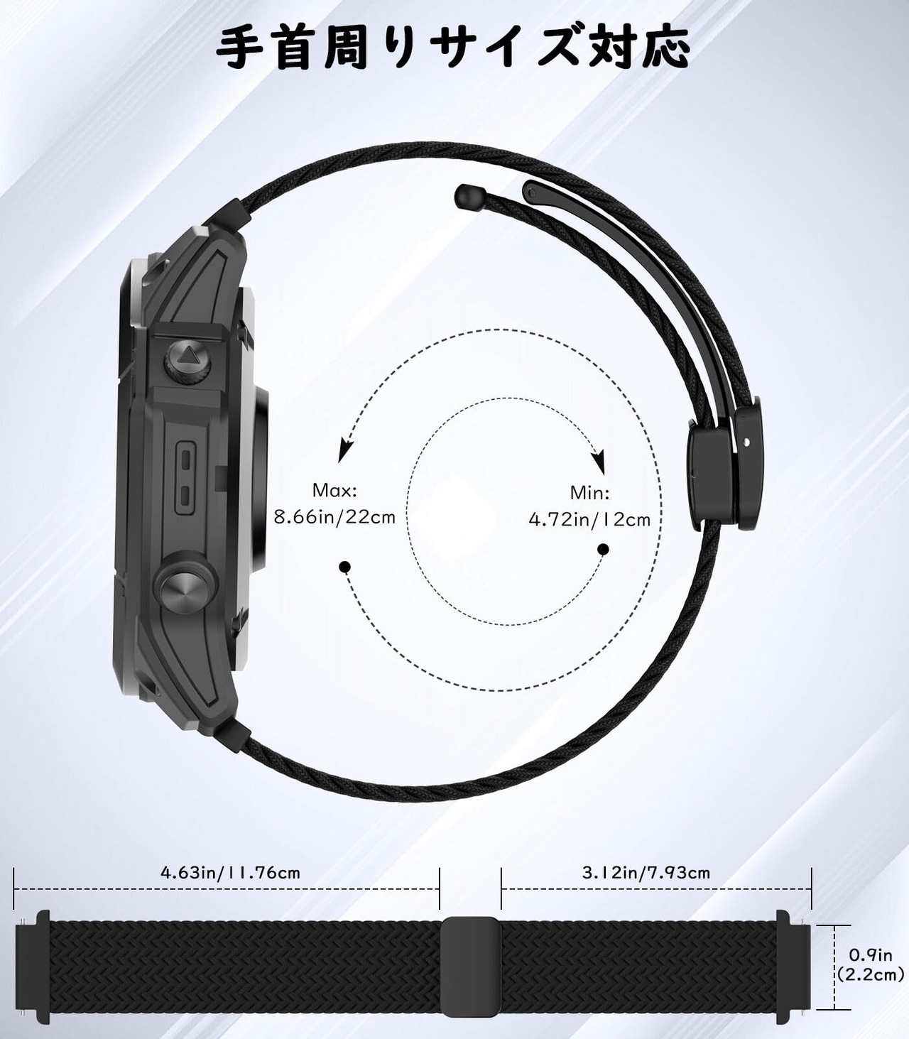 スマートウォッチバンド 替えベルト 22mm ガーミン255 バンド 弾力ナイロン製 マグネットバックル GarminForerunner255/265/265 music/Venu3/2/Vivoactive4/HuaweiWatch 3/3Pro/GT4 46MM/GalaxyWatch3(45mm) など ラグ幅22mm対応 クイックリリース 取扱簡単 Black