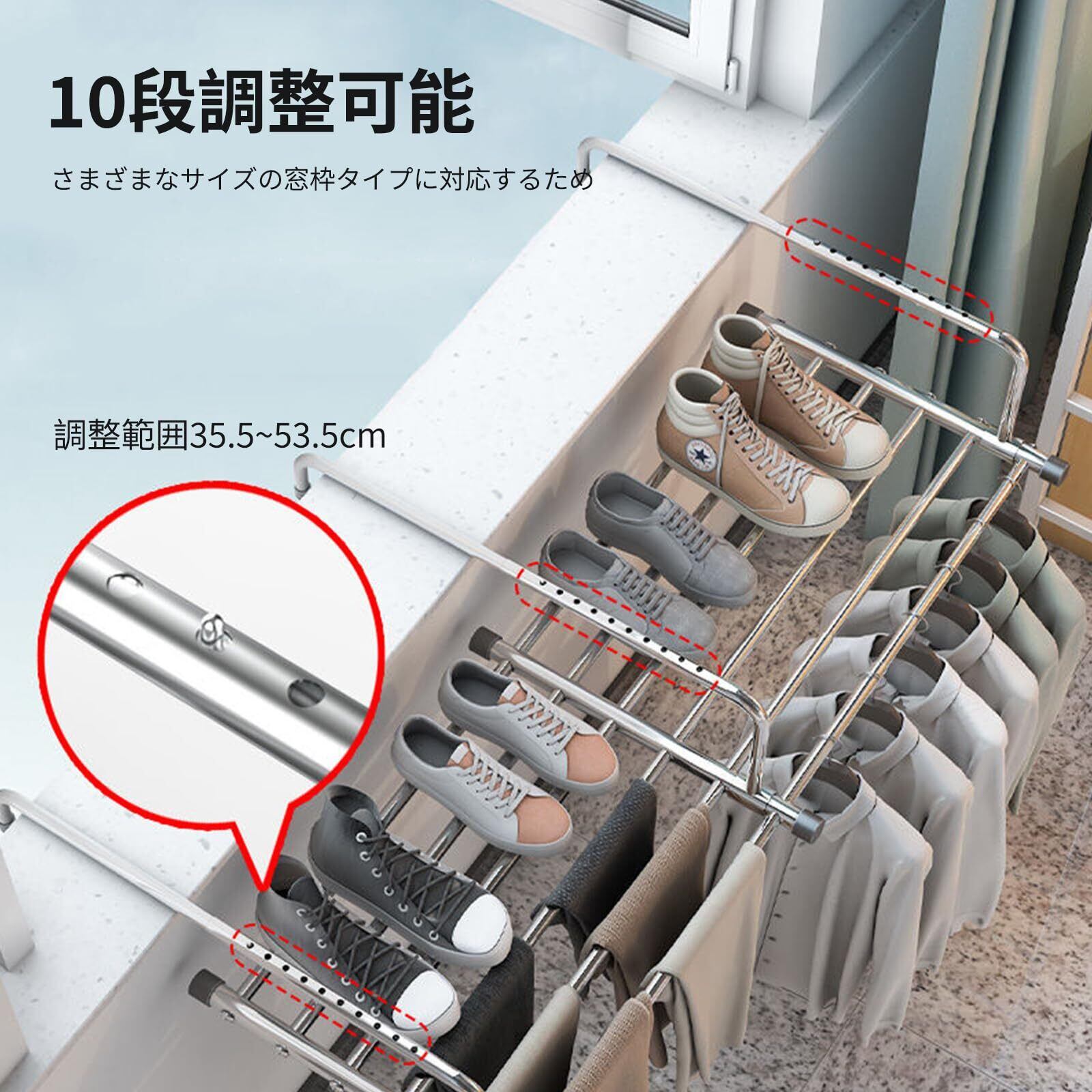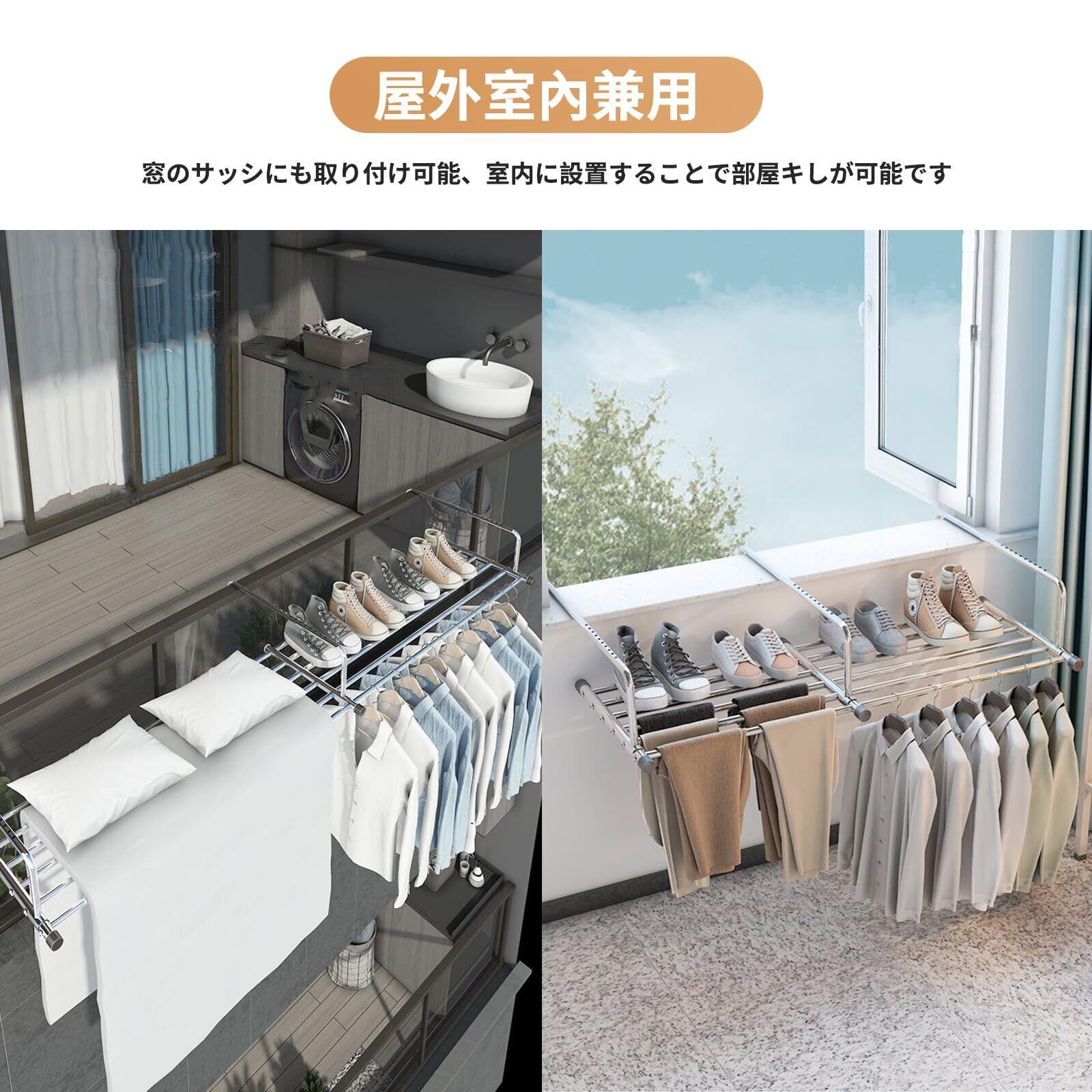 【高品質のステンレス鋼素材】ベランダ物干しはステンレス製で、耐傷性、耐高温性、優れた仕上がり、耐久性、防水性、防錆性、変形のない安定した構造、強力な耐荷重能力。