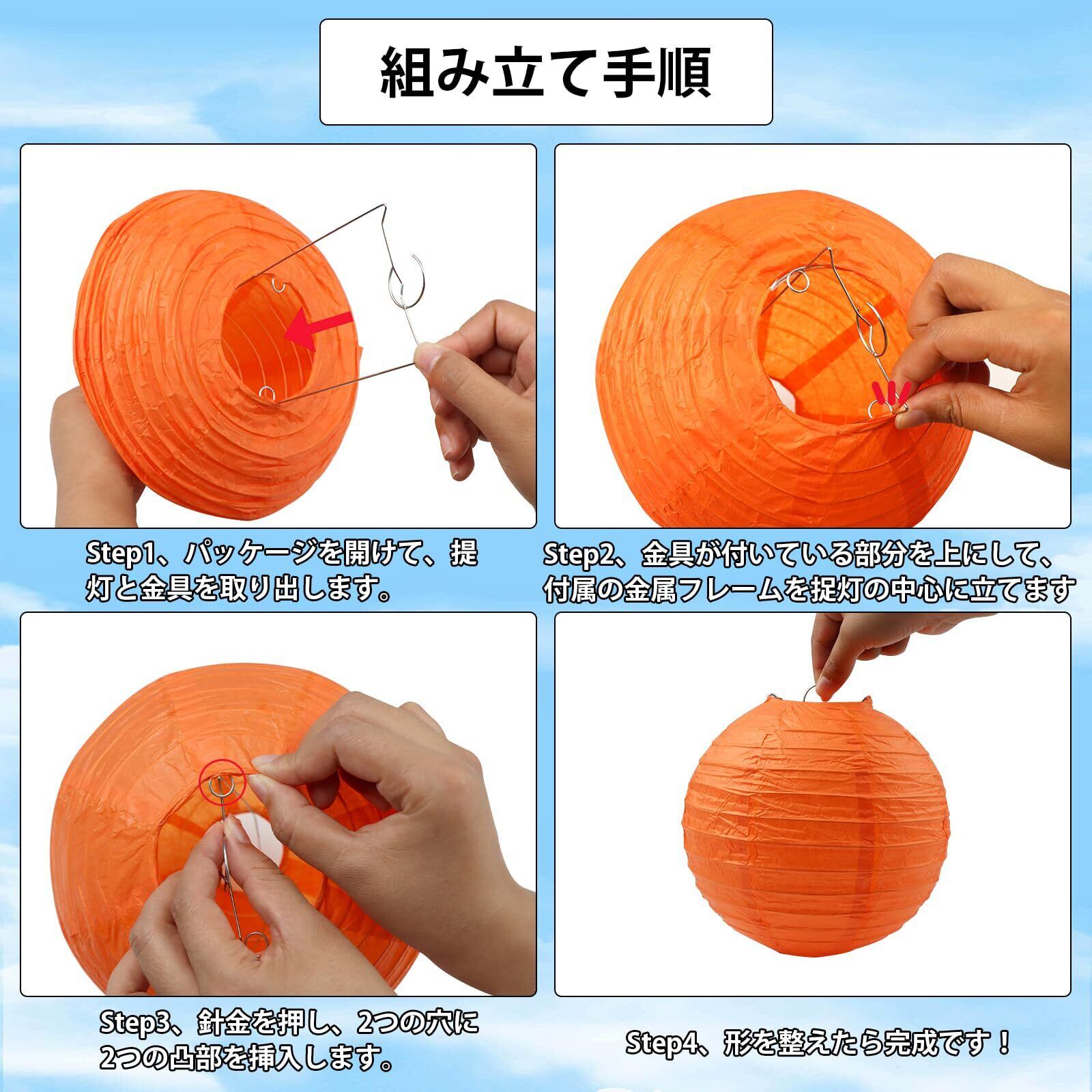 【組み立て方法】組み立て説明書があるので、取り付けは非常に簡単で、子供でも簡単に行えます。再利用可能なちょうちんは、使用しない時はコンパクトに収納でき。一枚ずつ個別梱包されているので、保管便利に、持ち運びも楽々です!