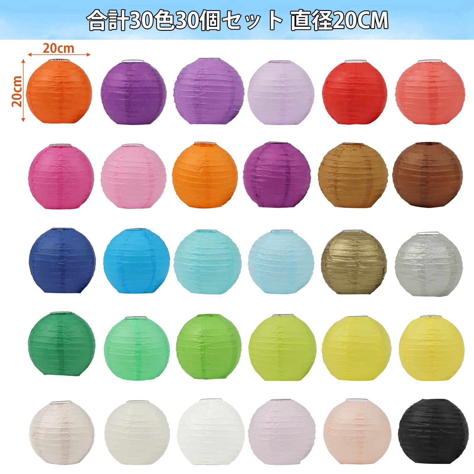 【豊かな色彩】赤、オレンジ、黄、ミントグリーン、緑、空色、濃紫、薄紫、白、ピンク、グレー、 シルバー 、カーキ、コーヒーなど30色紙提灯合計30個セット入り※お好みのカラーをお選び下さい。
