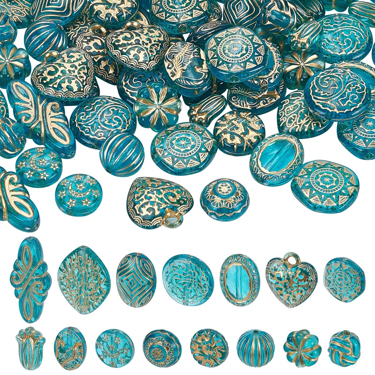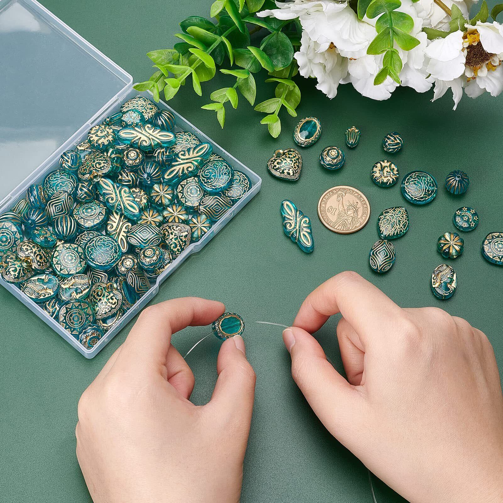 PH PandaHall 約90個セット クリアビーズ レトロ ヴィンテージ ビーズ 15種 欧風 アクセサリーパーツ アクリル ゴールドの花柄 ビーズミックス 手作り用品 DIY用 材料 ブレスレット プレゼント ギフト 手作りビーズ