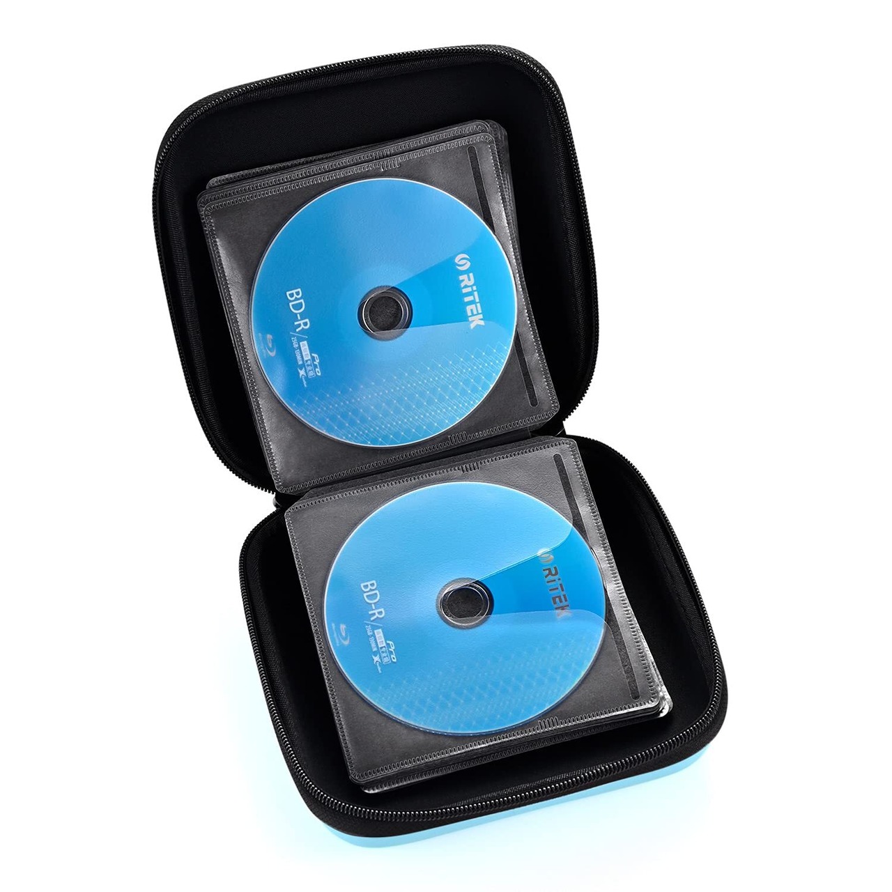 LIOVODE 48枚収納 CDケースポータブルEVA blu-ray ディスク収納ケース 大容量 DVD/VCD 収納 (48枚, スカイブルー 48)