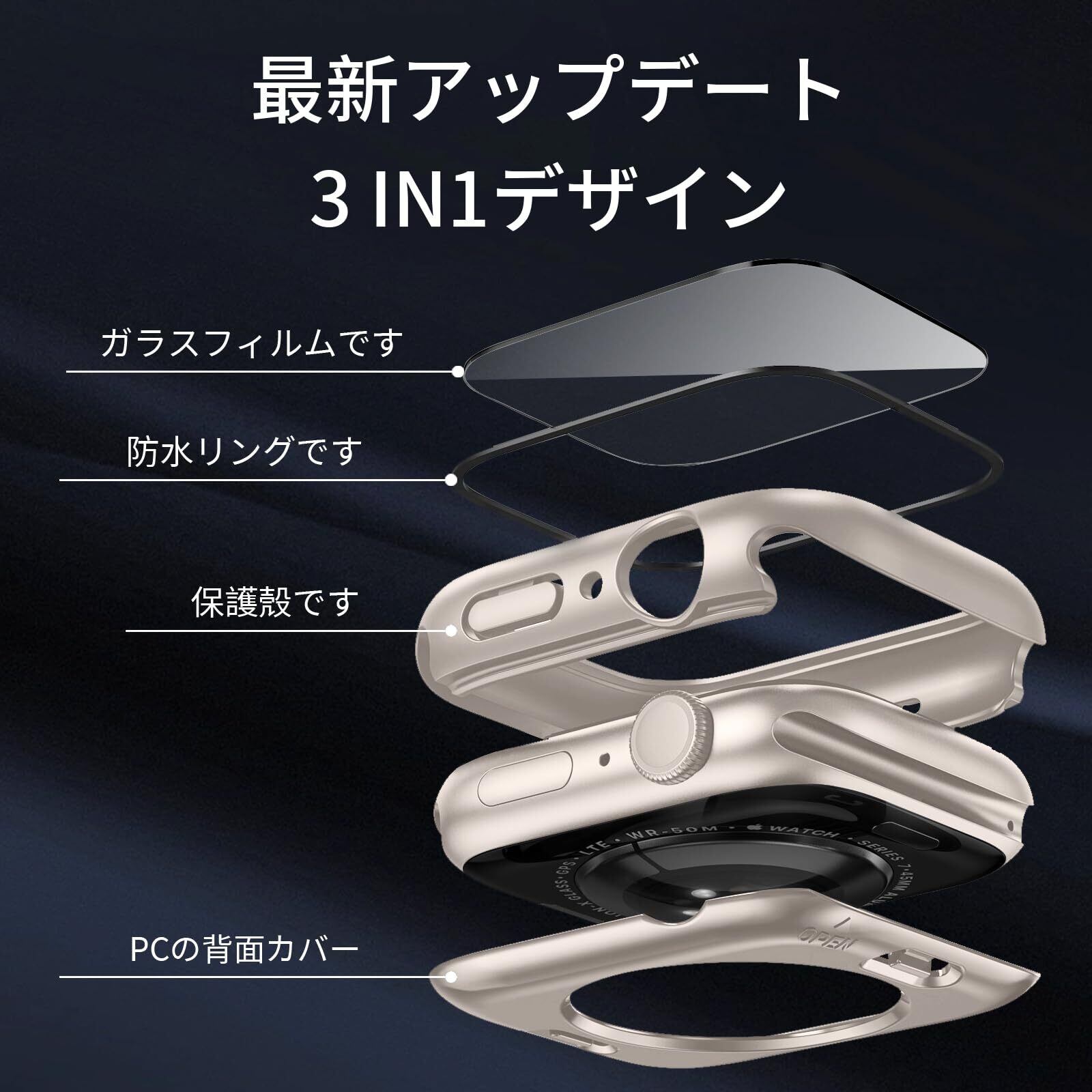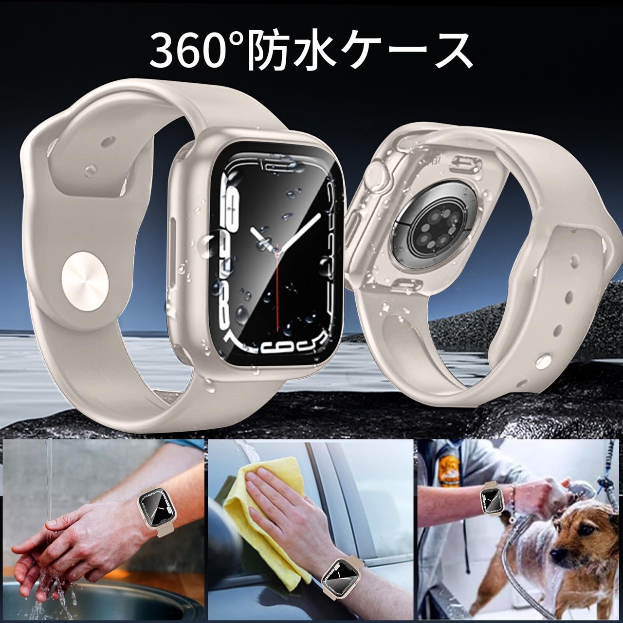 【2024改良モデル】CABOBE 対応 アップルウォッチ カバー 44mm IP68 防水ケース 360 アップルウォッチSE2/SE/6/5/4 ケース Apple Watch SE2/SE/6/5/4 ケース 対応 Apple Watch カバー ガラスフィルム 一体型 PC素材 耐衝撃 全面保護 対応 44mm スターライト