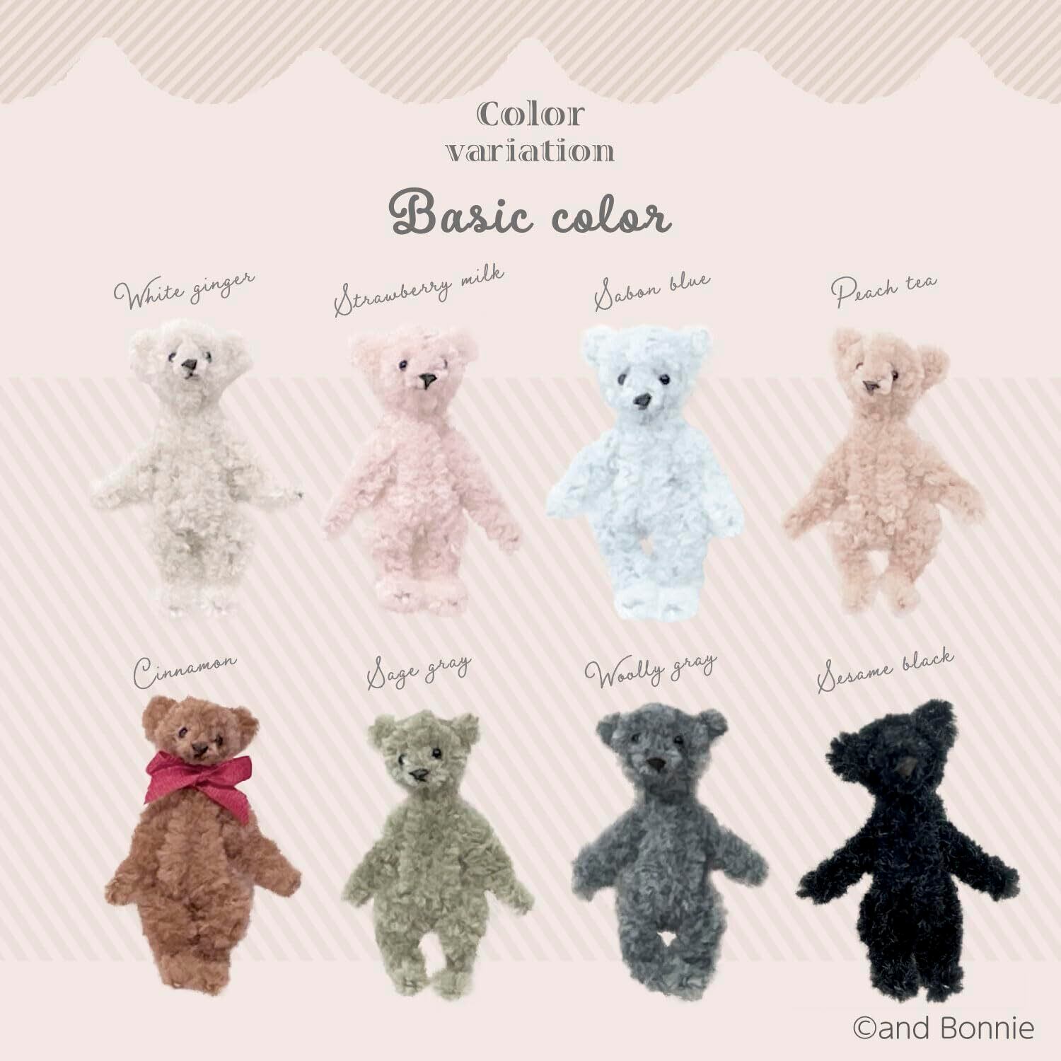 モフモフモール モール 幅6mm×1.3m巻 PT ピーチティー くま・うさぎ が作れるレシピのQRコード付き MOF-02