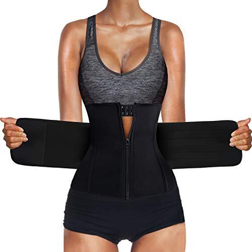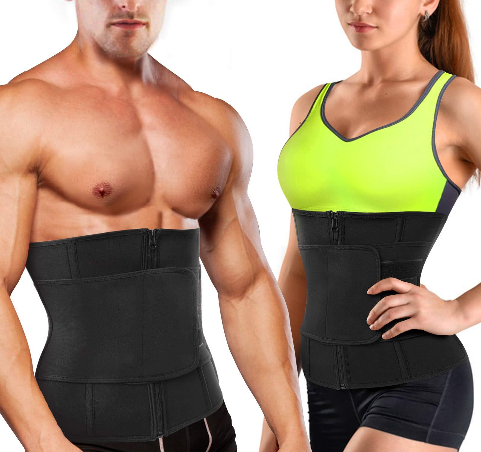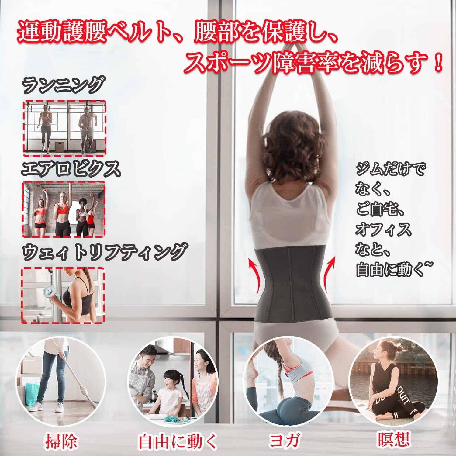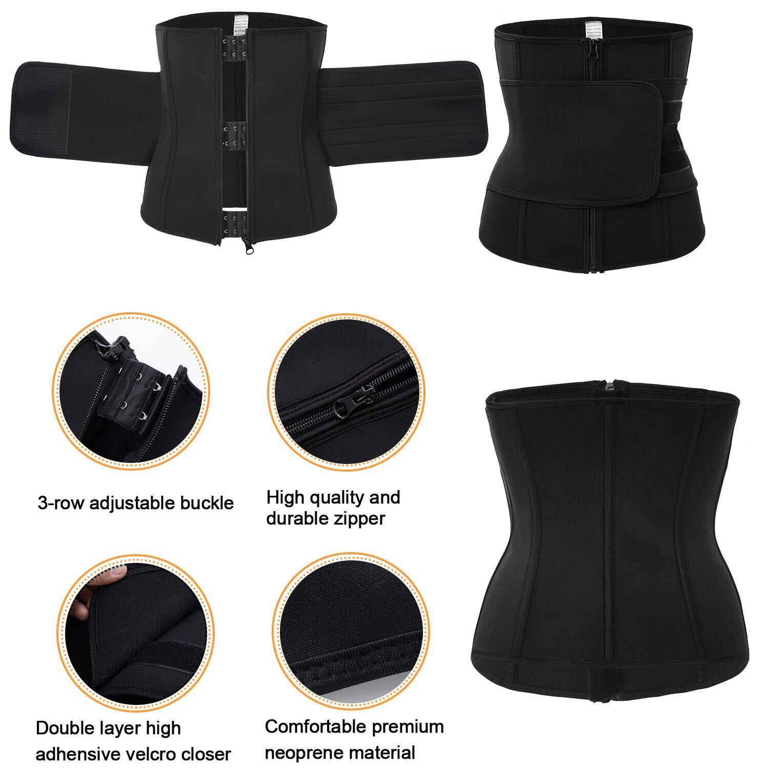 [Sawaiko] コルセット 圧迫 ウエストニッパー 男女兼用 お腹引き締め くびれ 腰 サポート 調整可能 ファスナー ホック テープ ネオプレン 発汗(ブラック,S)