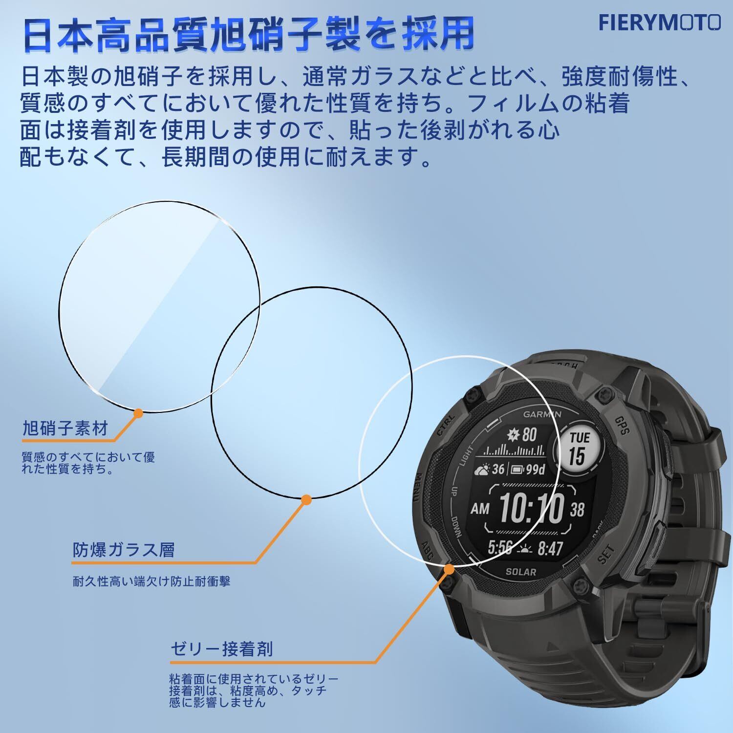【3枚セット 日本旭硝子製】 用 Garmin Instinct 2X ガラスフィルム ケース 用 GarminInstinct2XDualPower フィルム 用 ガーミンInstinct 2X ガラス 液晶 保護フィルム SGS認証 超薄型 9H硬度 全面保護 反射低減 水や油に強い 高感度タッチ 耐衝撃 飛散防止 気泡防止 自動吸着 貼り付け簡単