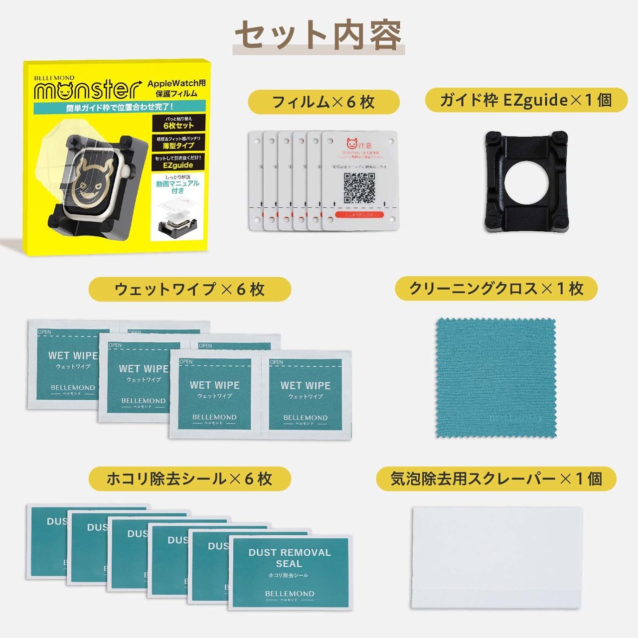 ▶▶▶【対応機種】:44mm(Apple Watch SE2 / SE / Series6 / Series5 / Series4 用) ※シリーズ・サイズは時計本体裏面の表記で確認できます。【セット内容】:フィルム × 6枚、ガイド枠 × 1個、 拭き取りシート × 6枚、ホコリ除去シール × 6枚、クリーニングクロス × 1枚、スクレーパー(ヘラ) × 1個 【貼り付けマニュアルについて】:貼り付け方法は動画をご準備しておりますので、「モンスターフィルム AppleWatch用 貼り付けマニュアル」をご覧ください。