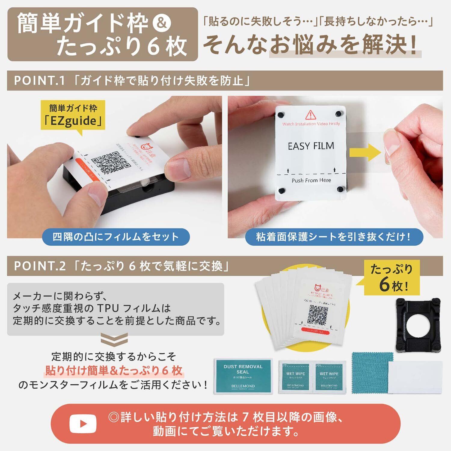 【6枚組】ベルモンド アップルウォッチ 用 フィルム Apple Watch Series SE2 / SE / 6 / 5 / 4 【 44mm 専用 】 保護フィルム 感度良好 極薄 TPU素材 第二世代 バンド カバー 干渉無し ガイド枠付き B1004