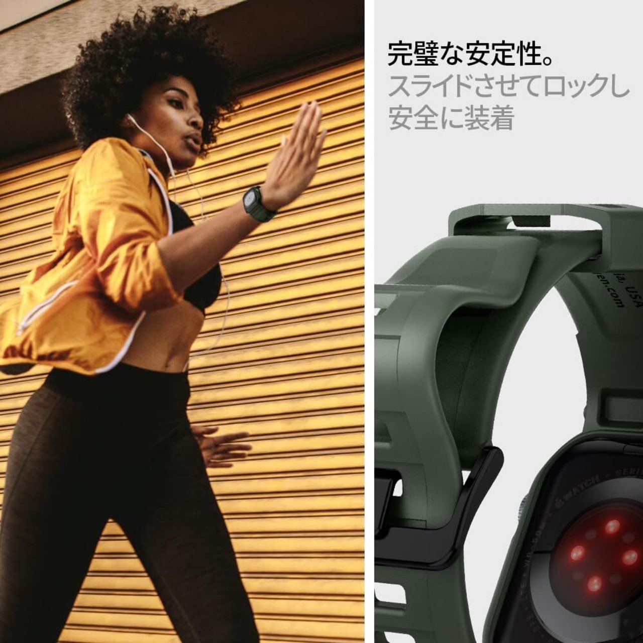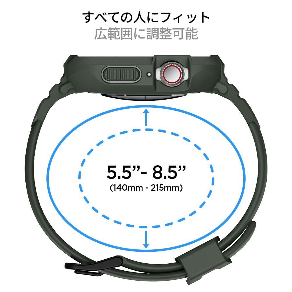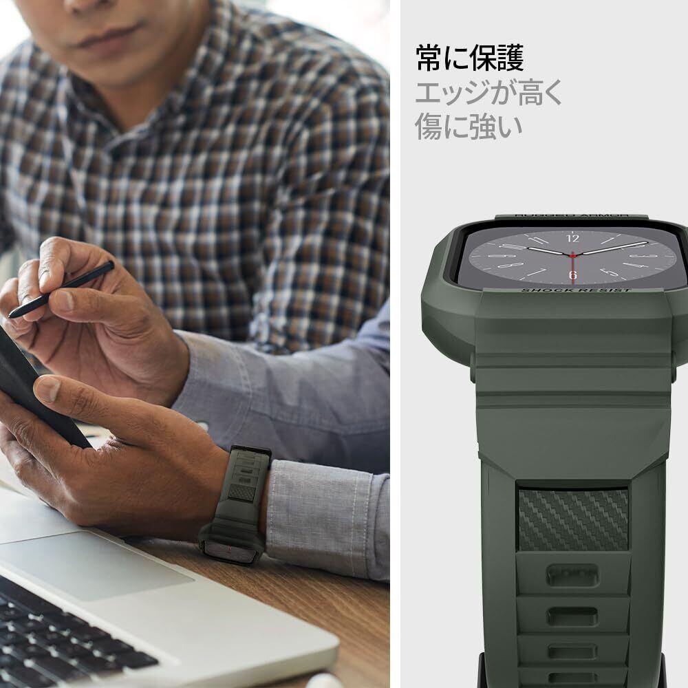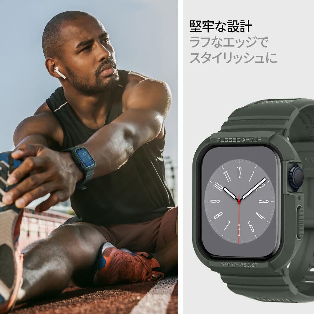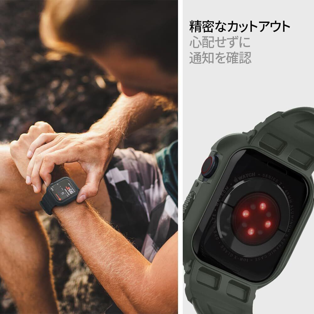 Spigen Apple Watch 45mm | 44mm 一体型 バンド ケース 【 Apple Watch 9 / 8 / 7 / SE2 / SE / 6 / 5 / 4 対応 】 カバー 耐衝撃 PC TPU 二重構造 スポーツバンド 落下 衝撃 吸収 耐久性 傷防止 ラギッド・アーマー・プロ 062CS26016 (ミリタリー・グリーン)