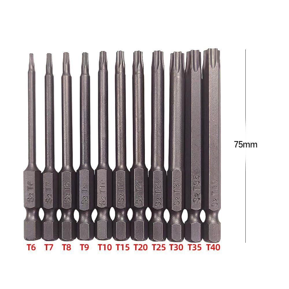 HEJINYUNトルクスドライバー ビット 六角軸へックスローブビット (T6-T40 11本セット 75mm)S2鋼ドライバービット 磁気 トルクス星ネジ用ビットセット 六角ビット ドリル ビット工具 電動工具用