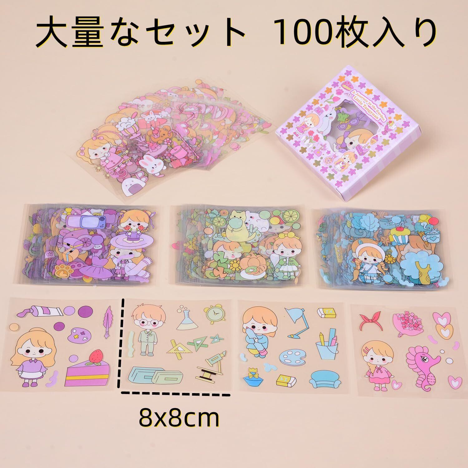 【コラージュ 素材 - 大量なセット 】一箱100枚シール、好みのサイズ、形にしたり、使い勝手いい、全て異なる柄なので、使うのが楽しくなります。