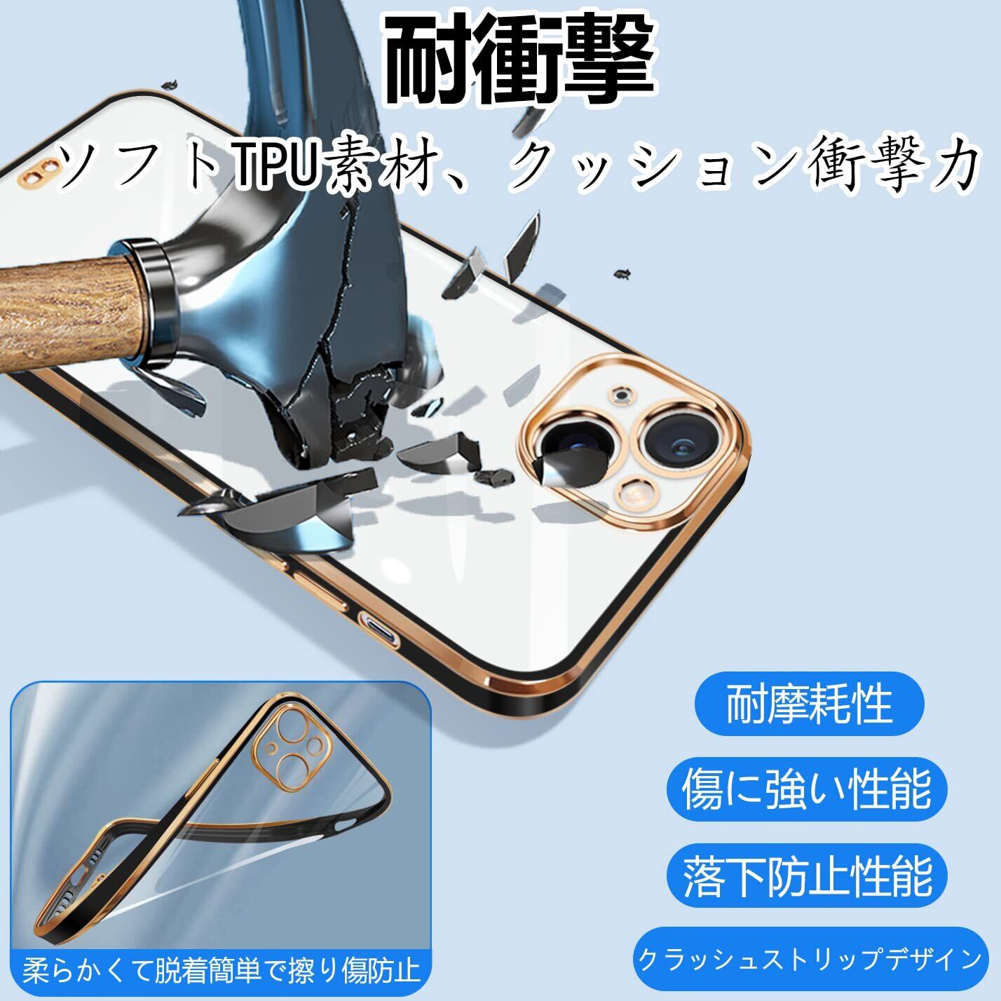 iPhone14 ケース クリア 透明 アイフォン14 カバー スマホケース 全面保護 耐衝撃 TPU ソフト 薄型 メッキ加工 携帯ストラップ ストラップホール付き 落下防止(ブラック)