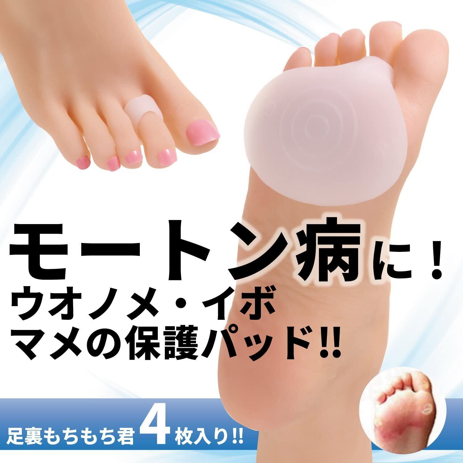 【足裏をもっちりおまもり】もちもち伸びる、やわらか~いシリコンパッドで足裏をもっちりおまもり とっても痛い足の裏のウオノメ・イボ・マメの保護パッド、足裏もちもち君4枚入りです。モートン病や足底筋膜炎などでお悩みの方、足裏の痛みを軽減!運動、ジョギング、その他のスポーツはもちろん、立ち仕事で足に負担のある方、ハイヒールや作業用靴を常用される方、男女兼用でお使いいただけます!