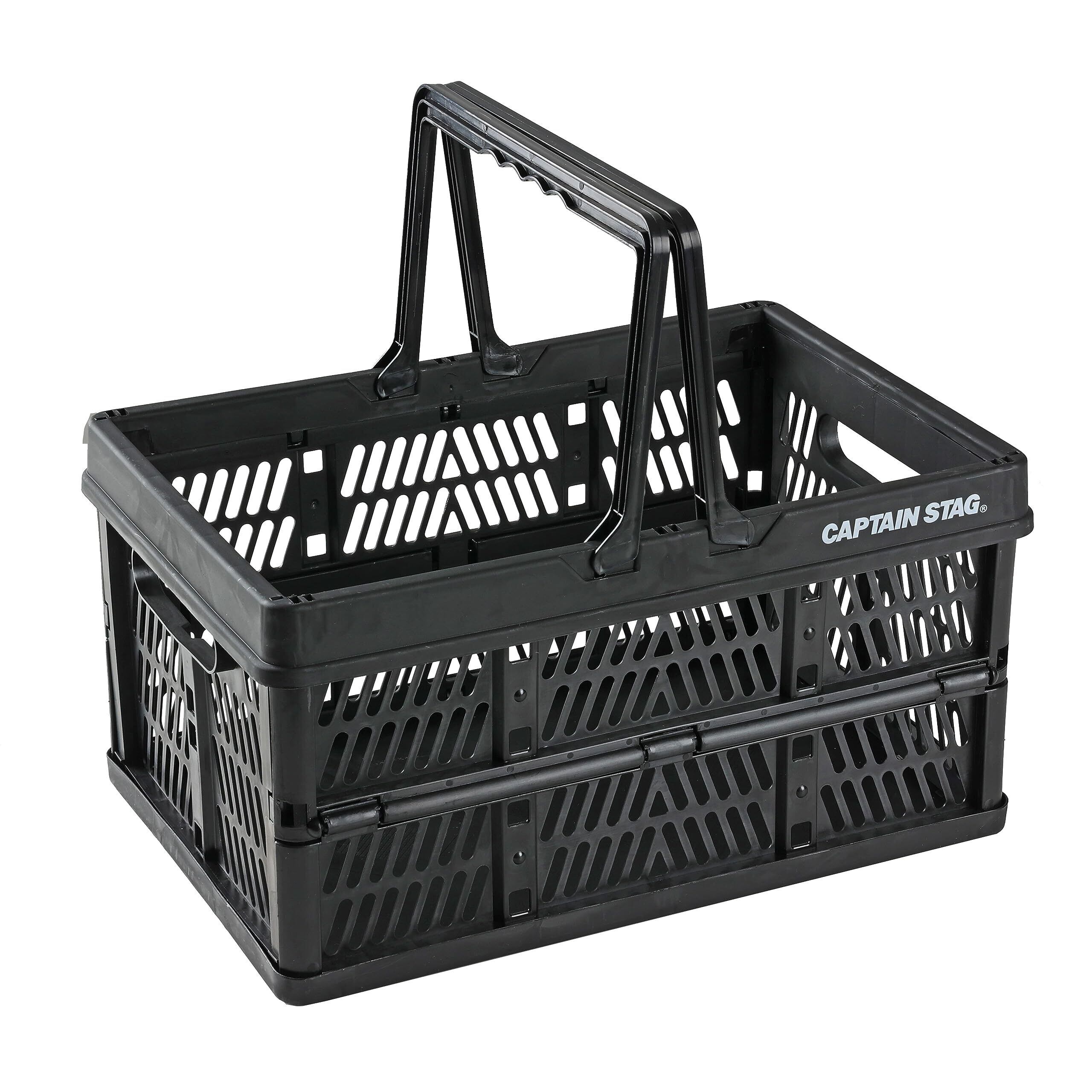 キャプテンスタッグ(CAPTAIN STAG) 折りたたみ コンテナ カゴ フォールディング ハンディ コンテナ 取っ手付き Mサイズ 容量15L ブラック UY-7070