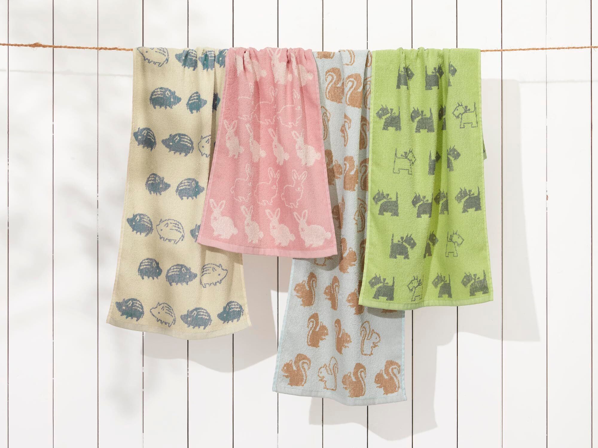 Kosugizen フェイスタオル 北欧調ジャガード アニマル 4色(4柄)各1枚入 34×80㎝ 北欧調のアニマルモチーフ 乾きやすい薄手タイプ 4枚セット SV-2319-4