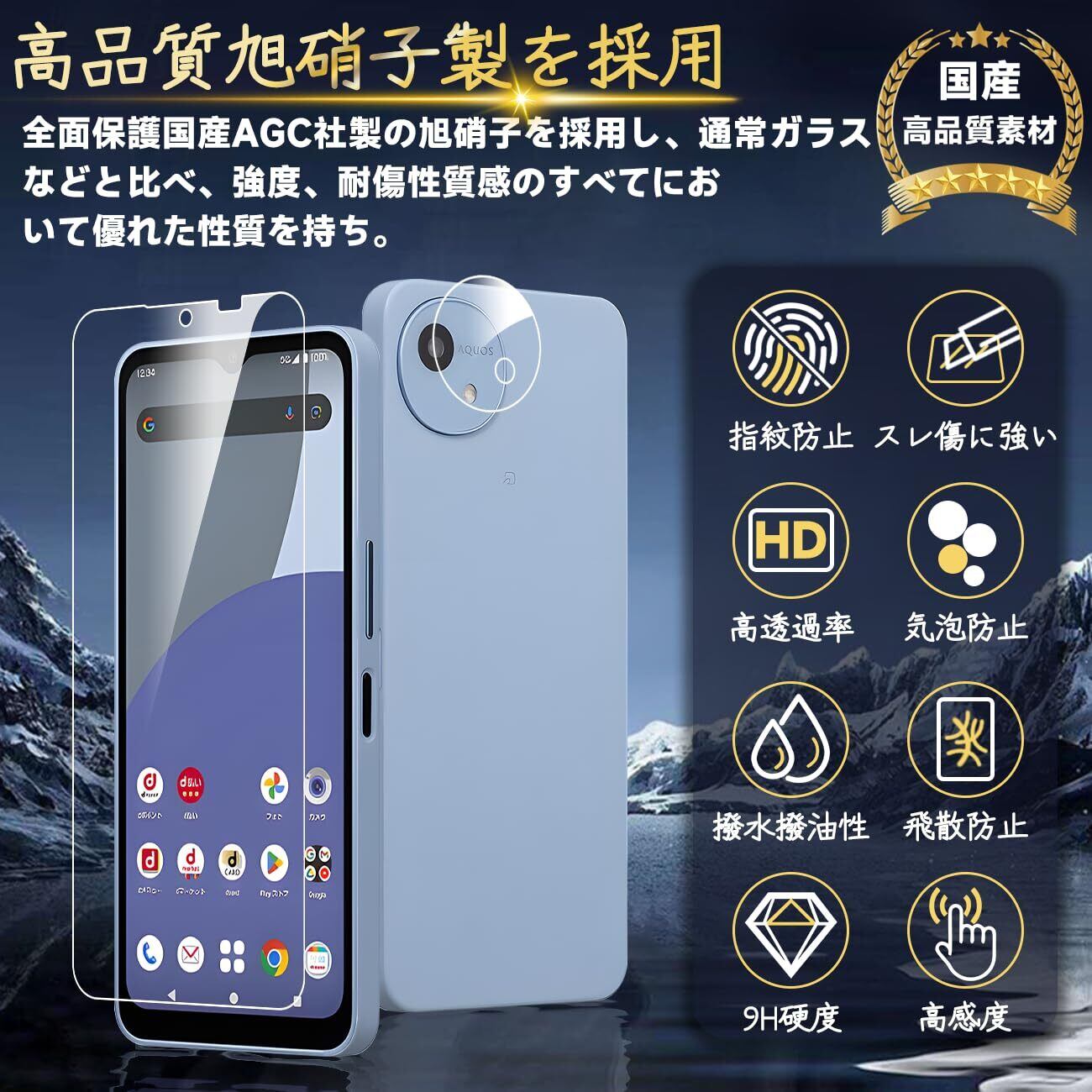 対応 Aquos wish 4 ガラスフィルム Aquos wish 4 SH-52E docomo ガイド枠付き 指紋防止 【2* フィルム + 2* レンズ保護フィルム+ 1*ガイド枠付き+ 1*取り除き発泡板】国産旭硝子材質 Aquoswish 4 SH-52E docomo 薄型 強化ガラス Aquoswish4 保護フィルム 高光沢 Aquos wish4 SH-52E docomo 液晶 ガラス ケース 9H硬度 厚さ0.26mm超薄型 高透過率 気泡なし ラウンドエッジ加工 簡単貼り付け 3