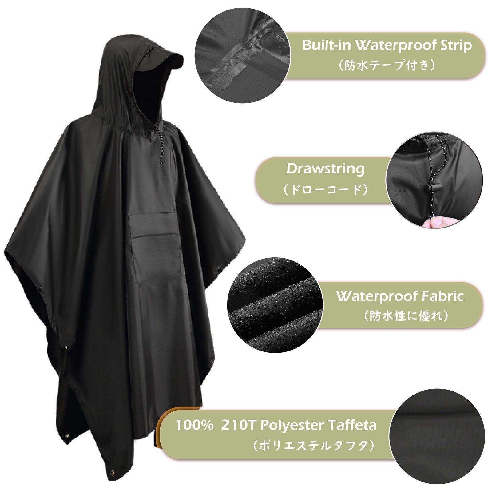 【多機能】レインポンチョ、レインコートだけでなく、長い毛布、サンシェードとして使えます。雨の日の朝のウォーキング、写真撮影時、野外音楽フェス、スポーツ観戦等じっとしている方なら良い雨具