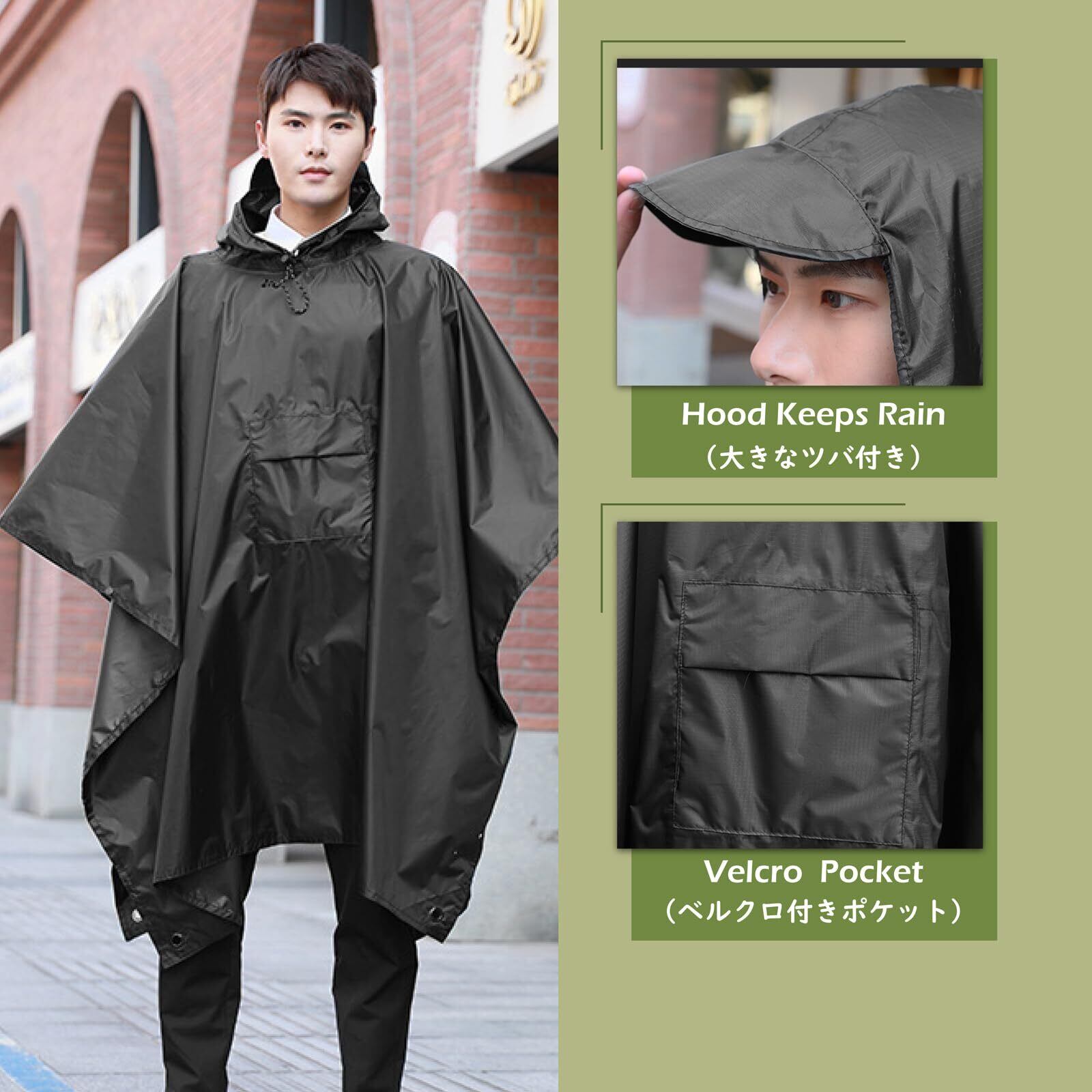 [TRIWONDER] レインポンチョ レインコート ポンチョ メンズ レディース レインウェア 雨具 防水 アウトドア 自転車 通学 通勤 ハイキング 多機能 収納袋付き (グリーン)
