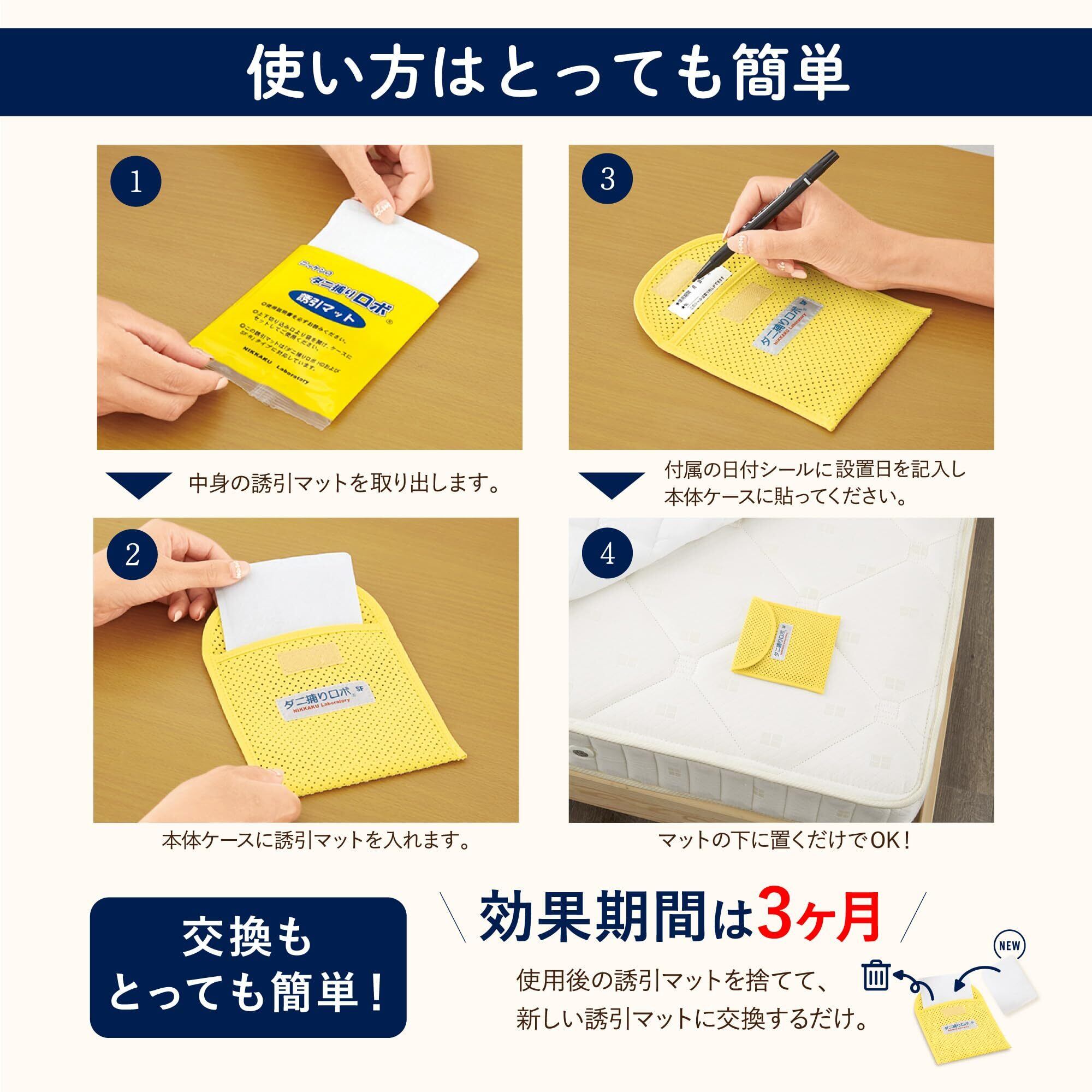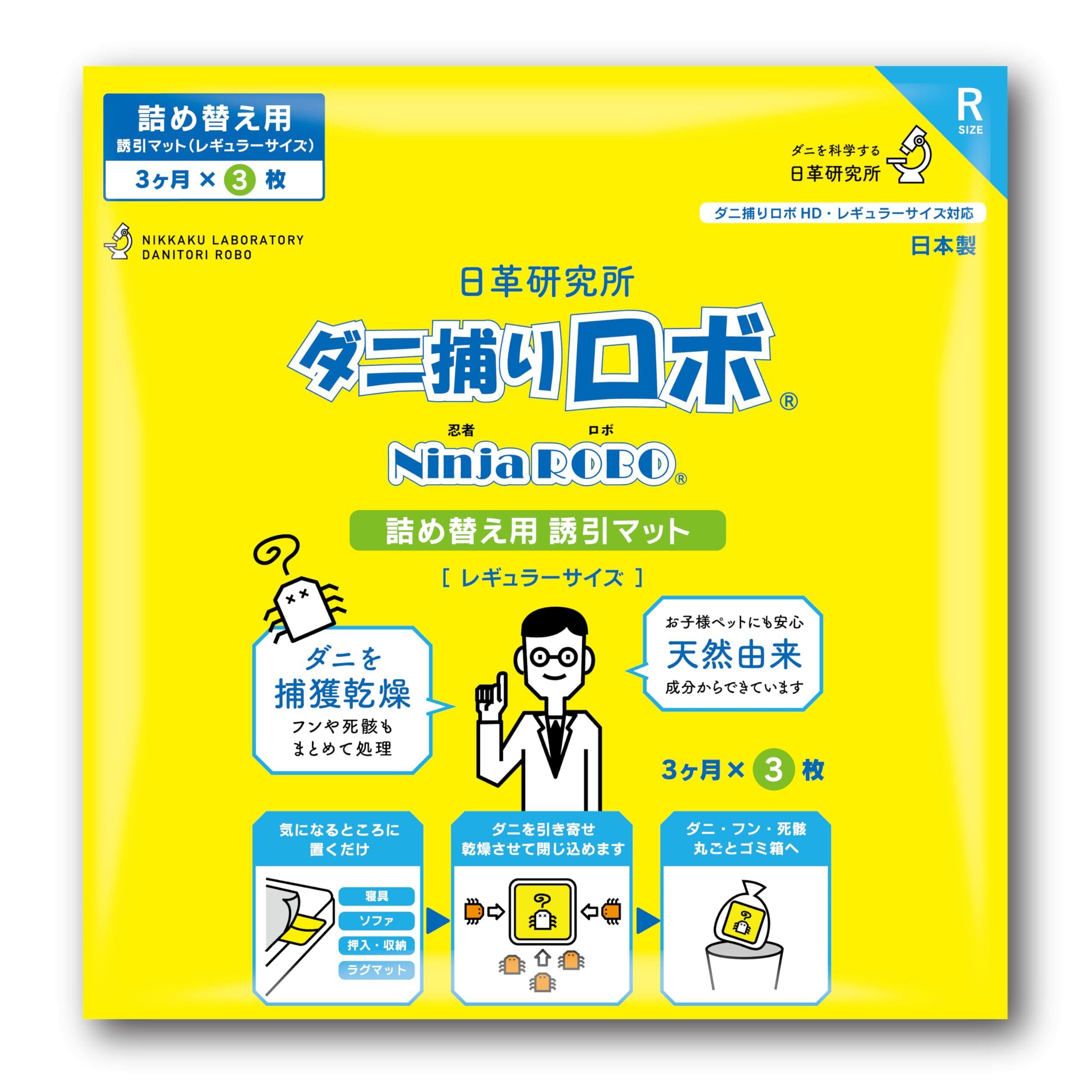 【日革研究所】ダニ捕りロボ 詰め替え用 誘引マット (レギュラーサイズ3枚) 日本製 置くだけ ダニ取りシート 3ヶ月有効 殺虫剤成分ゼロ 子供やペットにも安心