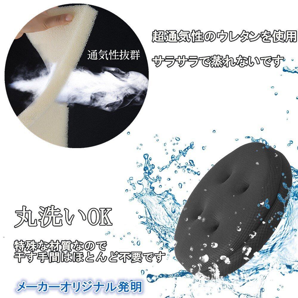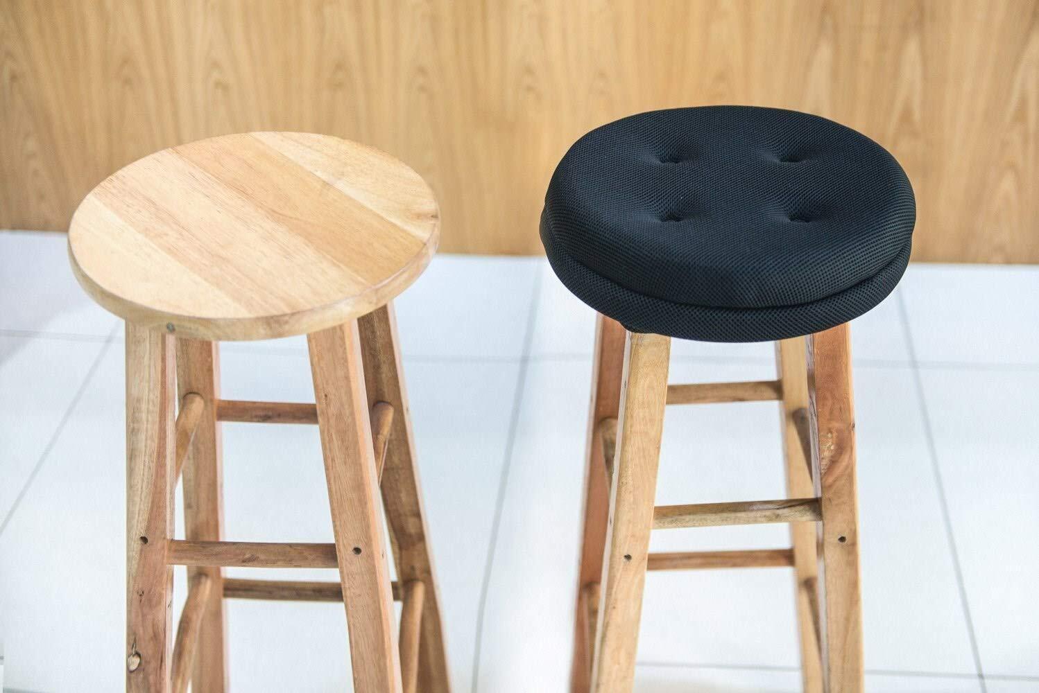Baibu Home 超通気性 座布団 30cm ブラック 丸椅子カバー 蒸れない 丸洗える クッション 丸型 チェアクッション インテリア 固定ゴム付き