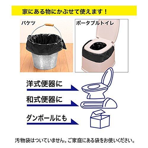 市販のゴミ袋を利用して、断水時に自宅のトイレが簡易トイレなります。防災、災害、工事現場、アウトドア、介護用などいろんな場面で活躍。洋式トイレ以外にも簡易トイレやバケツ、段ボールなどにかぶせても使用できます。