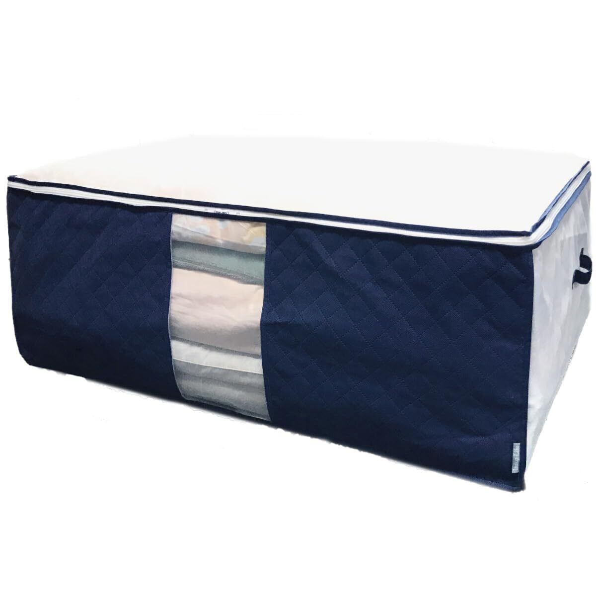 【商品仕様】サイズ/(約)幅100x奥行70x高さ35cm 本体重量:280g カラー/ホワイトx藍色 内容/1枚 収納目安/掛け布団(シングル)・敷布団(シングル - シングルロング) 各1枚 材質/ポリプロピレン不織布・ポリエチレン・活性炭シート 生産国/中国 ※洗えません
