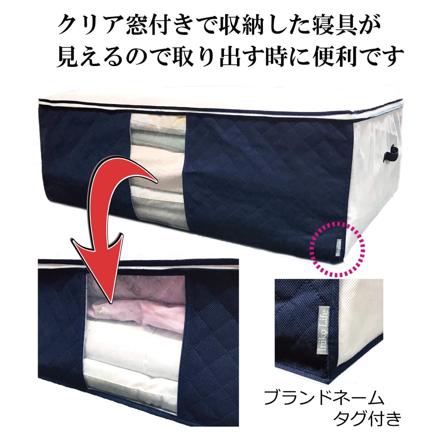 ※持ち手部分にかなり重さがかかりますので取り扱いにご注意ください(持ち手部分は二重縫製加工済)/通気性を重視し厚紙などは入っておりませんので、収納物が入っていない場合は自立しません(使用しない時はコンパクトに畳めます)/収納する寝具の厚みなどにより収納目安は変わります。ご了承くださいませ。