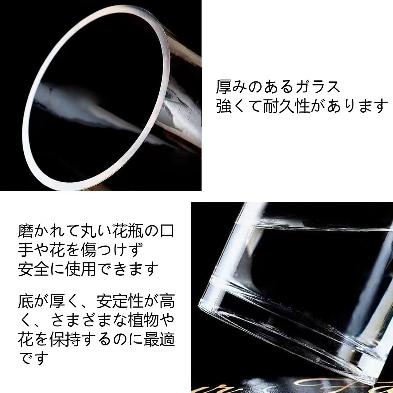 大きいサイズ: 高さ:35cm 直径:12cm このサイズのシリンダーベースは、60〜80cmのブーケ、つる性の花、茎、葉、枝に適しています。例えば、桜、バラ、ユリなどは花瓶にちょうど収まる長さです。