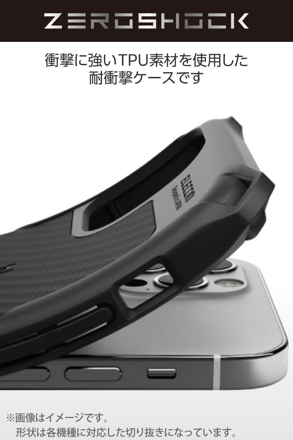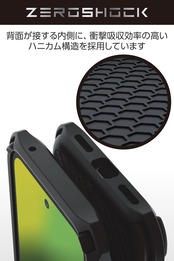 ケース背面から側面にかけてカーボン調のグリップテクスチャーを施すことで、滑りにくくし持ちやすさを向上しています。