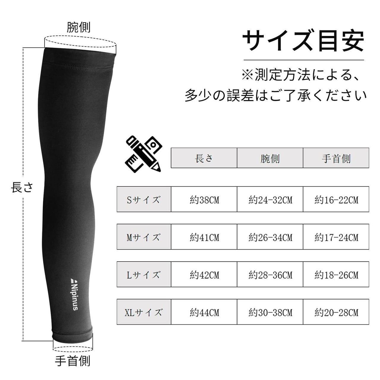 [Nipinus] アームカバー 冷感 日焼け止め メンズ レディース アームカバー 涼しい サラサラ 無地 吸汗速乾 滑り止め ゴルフ 野球 ランニング スポーツ 作業用 腕カバー (ブラック, L)