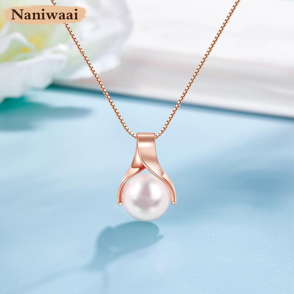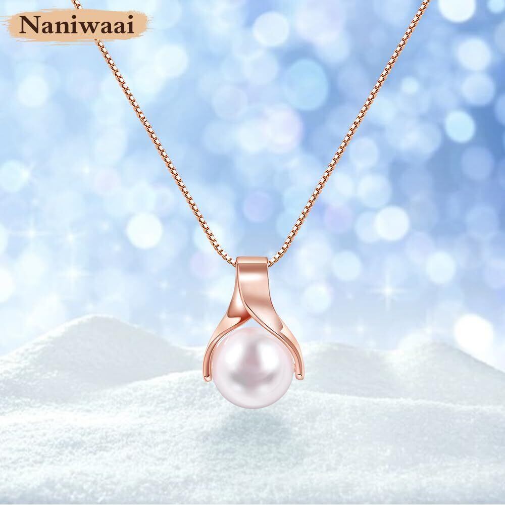 [Naniwaai] ネックレス レディース パール ネックレス 真珠 ペンダント ピンク 18金コーティング シルバー925 金属アレルギー対応 人気 女性 ジュエリー プレゼント 結婚式 記念日 母の日