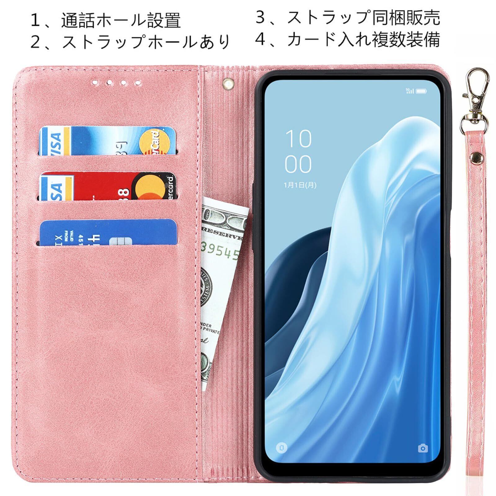OPPO A79 5G ケース 手帳型 ストラップ おっぽ A79 5G A303OP 手帳 CPH2557 スマホケース オッポ A79 5G 手帳型ケース フリップケース OPPOA79ケース オッポA79ケース A79ケース 適用 【BonwFzin】 PU レザー ストラップケース ストラップホール付き マグネット フリップ カード カード入れ スタンド 落ち着いた色 レトロ ピンク