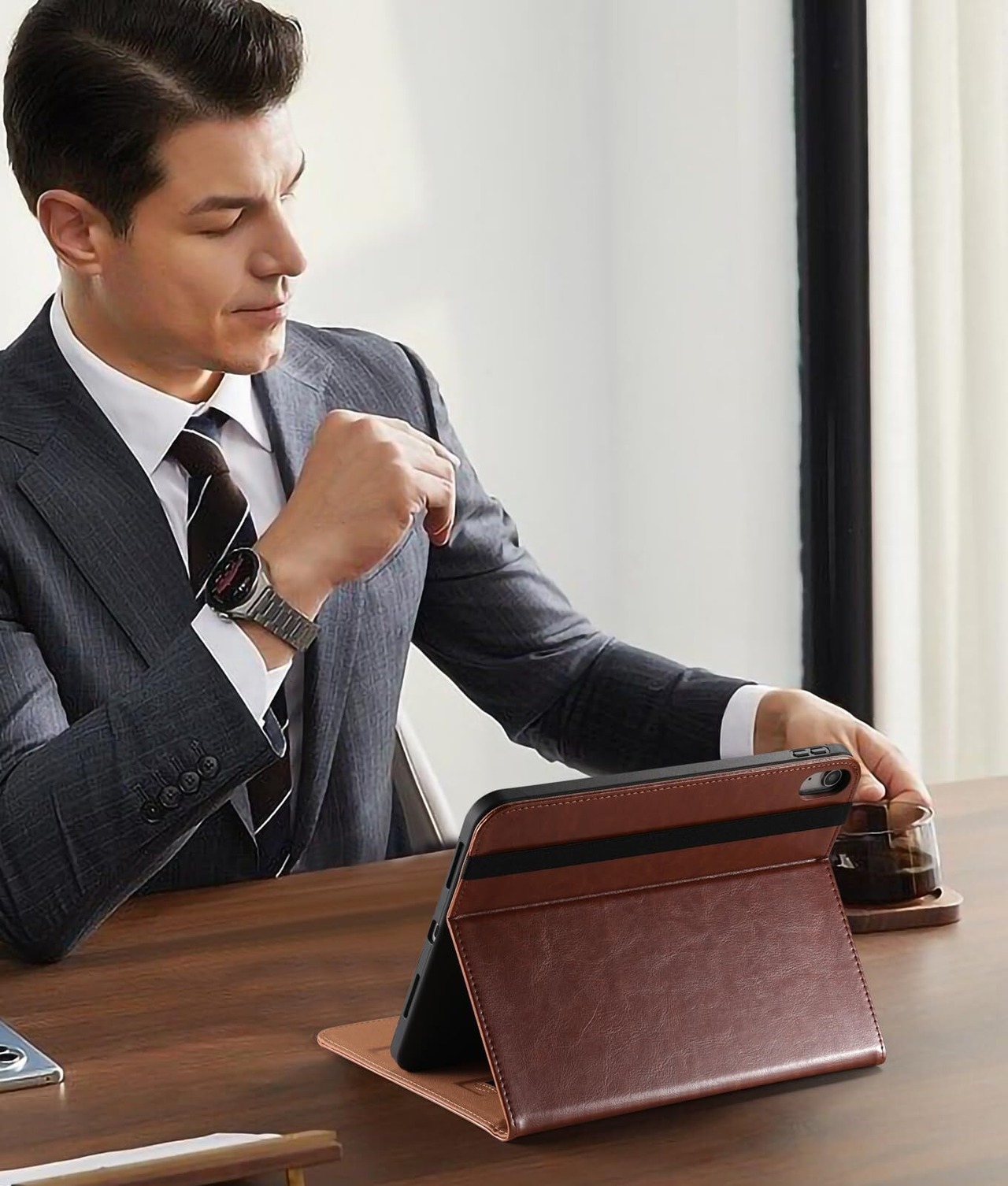 Maledan 対応iPad 10世代 ケース 二段階角度調節 ペンシル収納機能 PUレザー テレワーク用 オートスリープ/ウェイク機能 耐衝撃 手帳型
