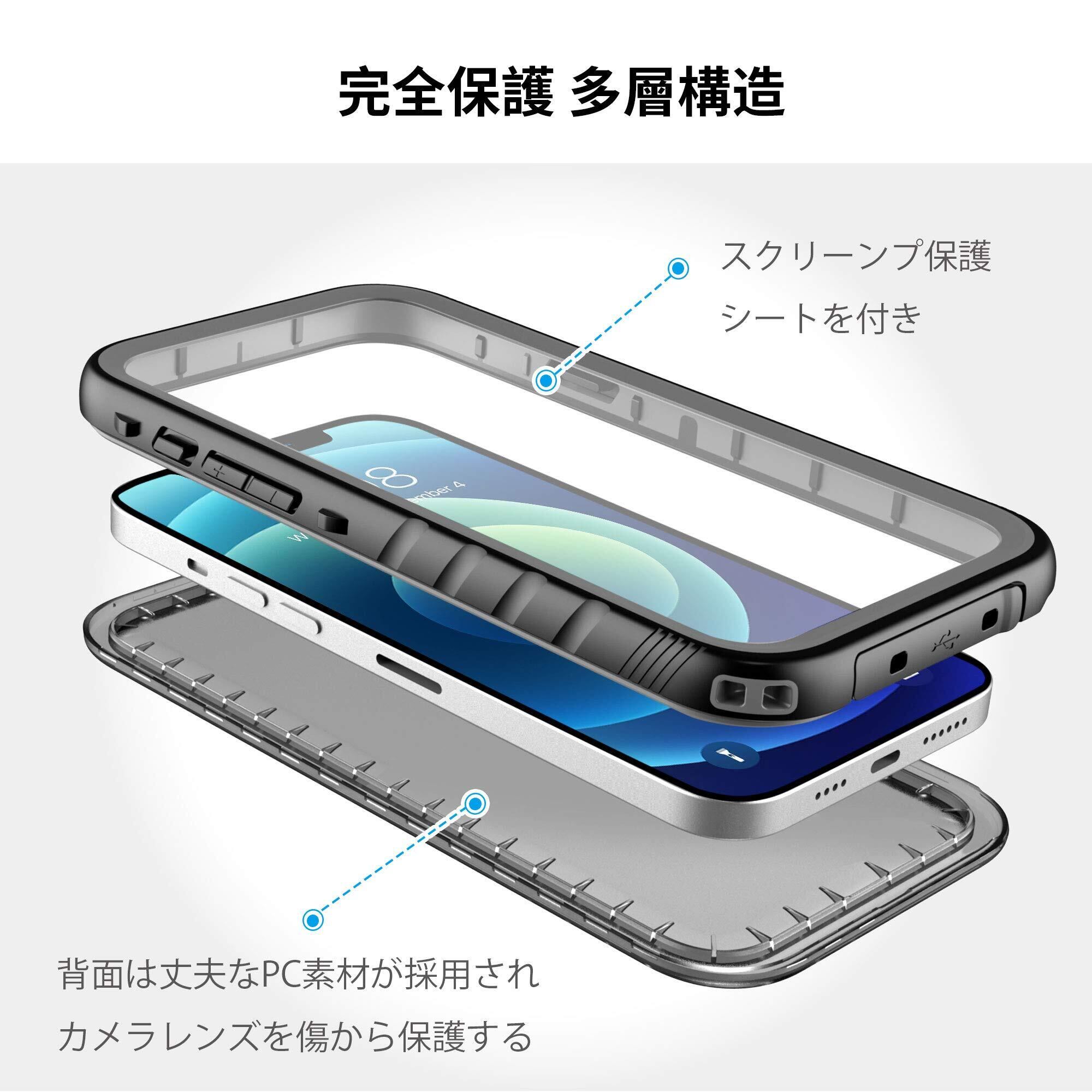 【IP68規格&完全防水】いPhone 12 Pro Max 防水ケースは完全密封で、IP68防水規格等級を取得しておりました。水深さ2mの水中に1時間まで水没できます。また 釣り、お風呂、夏のプール、雨の日、冬のスキーいろいろな場合でも、いつもで安心してご利用いいただけます。