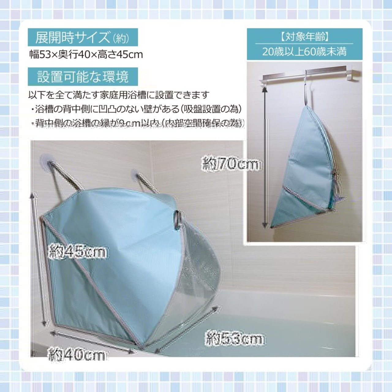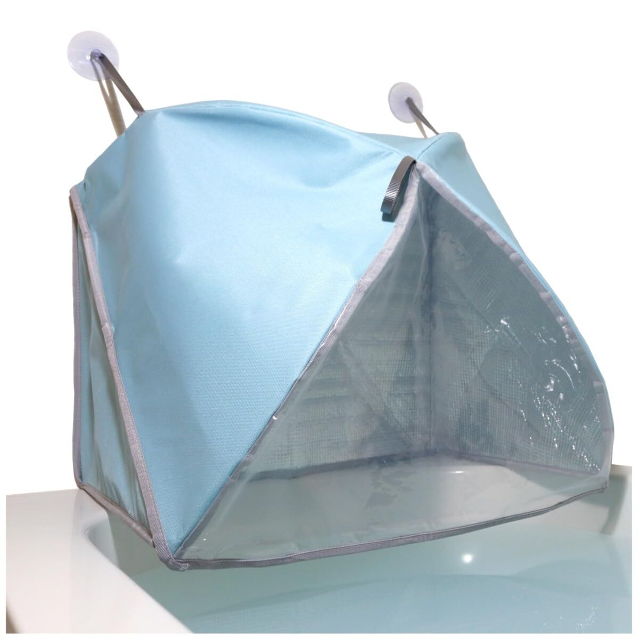 【お風呂でサウナ気分】自宅の浴槽に吸盤2コで簡単に設置。お湯から立ち上る湯気や熱気を傘に充満させて、ぽかぽかサウナ気分!