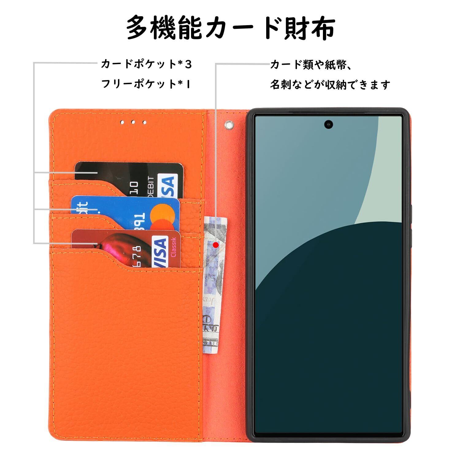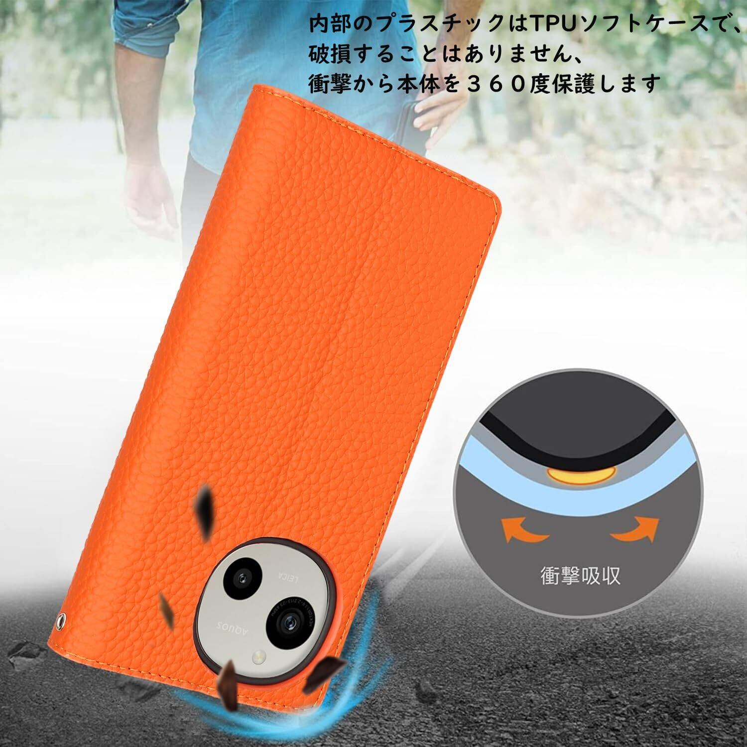 Havaya AQUOS R9 ケース SH-51E ケース AQUOS R9ケース 手帳型 ストラップ 本革 au シャープ Sharp アクオス r9 docomo 耐衝撃 カバー SoftBank カード収納 スタンド機能 レザー -オレンジ