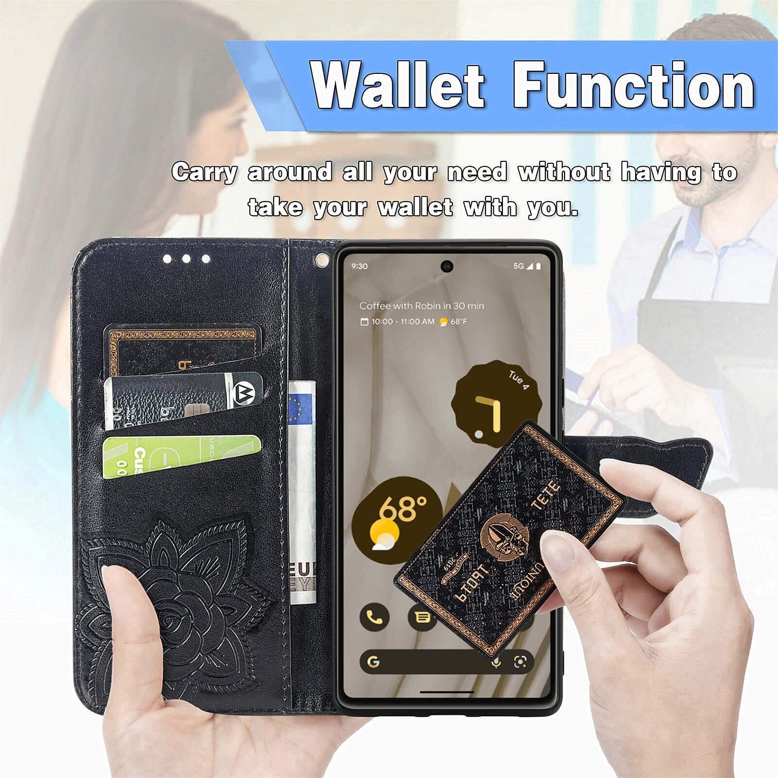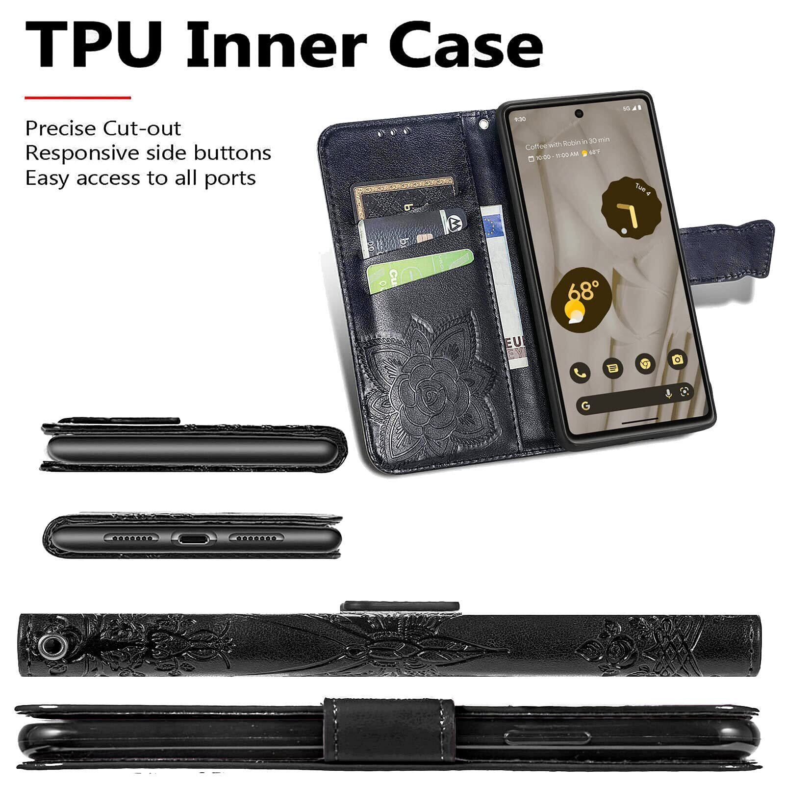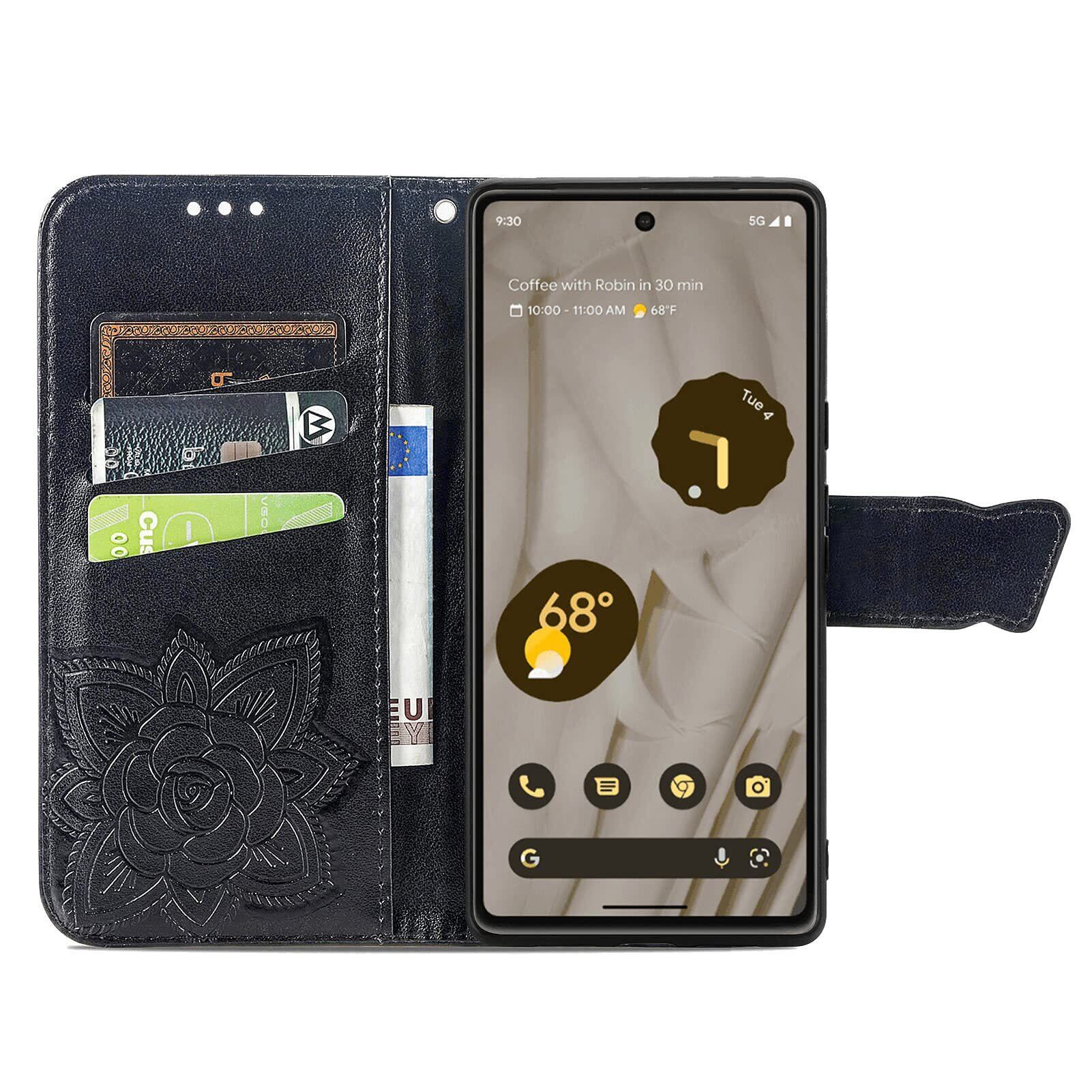 に適用するGoogle Pixel 7A ケース 手帳型 ピクセル7Aノートブック型携帯電話保護カバー多機能携帯電話ホルスター財布携帯電話ホルダーバンプパターンテクスチャ耐久性摩擦耐性携帯電話ケース男性と女性に適した多色オプション (バタフライ黒)