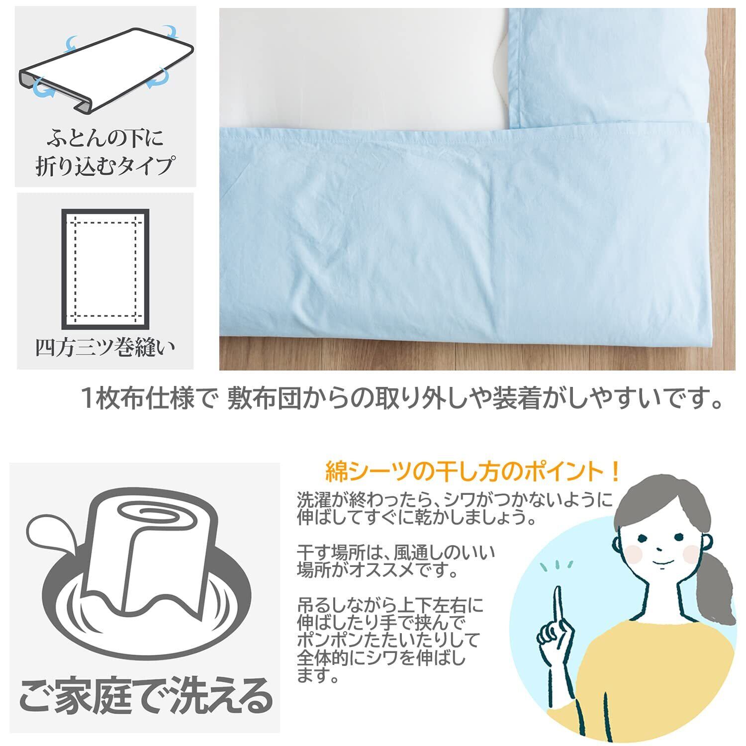 四方三巻縫い。布団の下に織り込むタイプ。1枚布なので 敷布団からの取り外しや装着がしやすい。